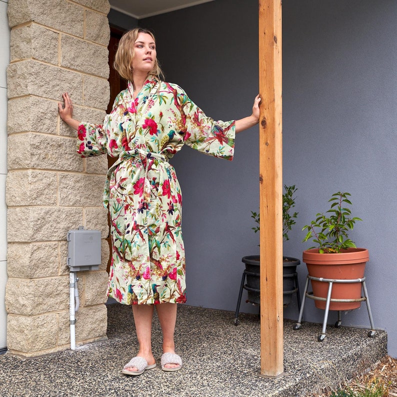 Linen Connections Frida Floral Cotton Velvet Kimono Bathrobe Gift for her, Bridal Robes CK82