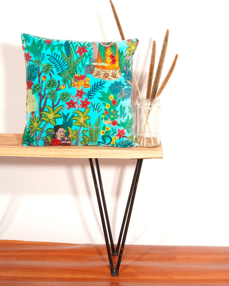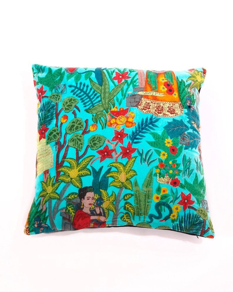 Linen Connections Frida Kahlo Velvet Cushion Cover Frida's Garden Cushion Handmade Mexico Muertes Decorative Cushion 100% cotton velvet