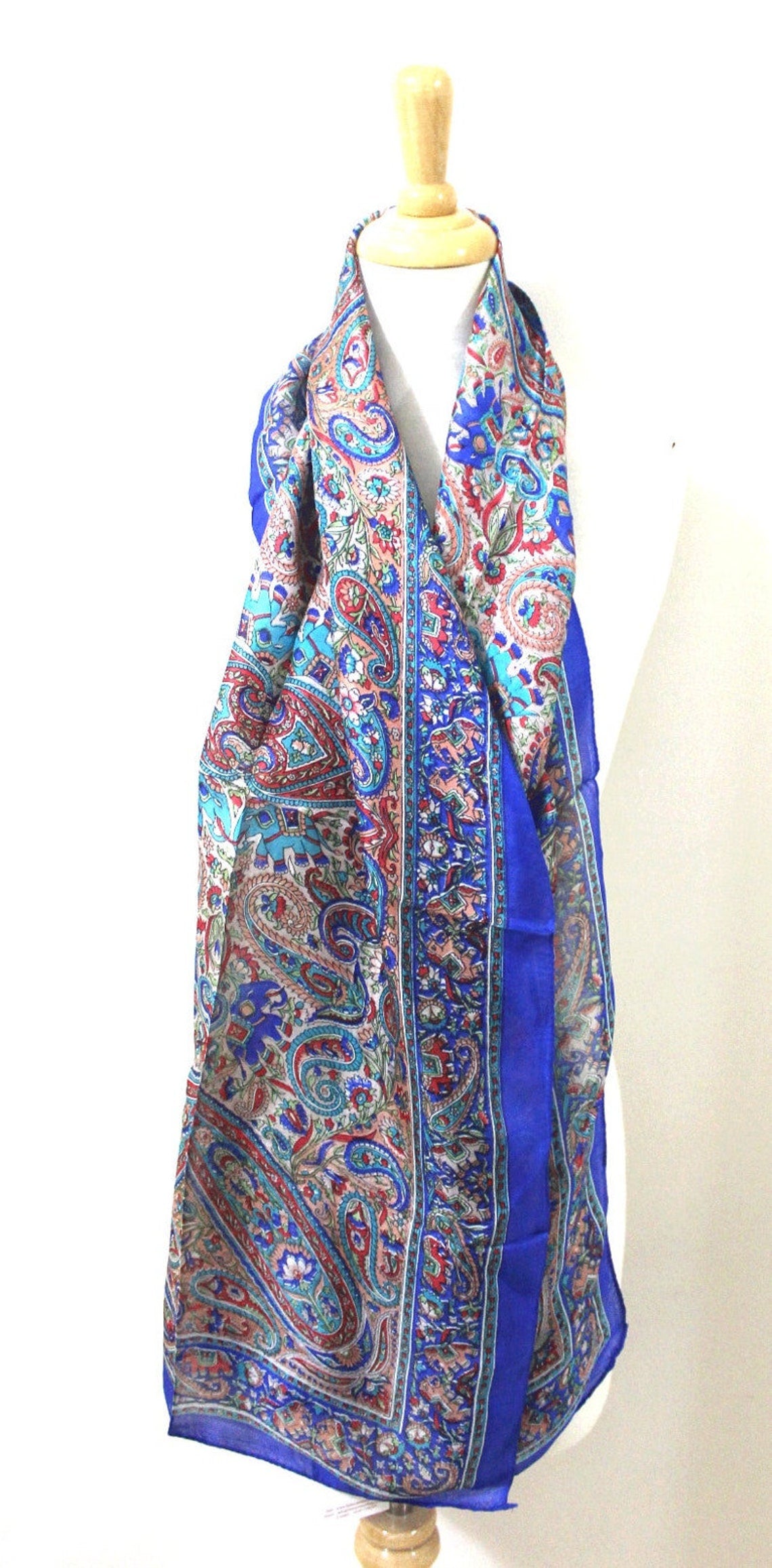 Linen Connections Silk Scarf Neck Wrap Head Scarf Indian Scarf Stol Winter Fashion Boho Paisley Handmade Vintag