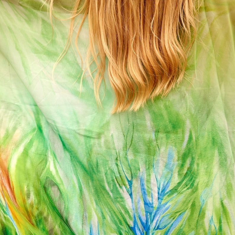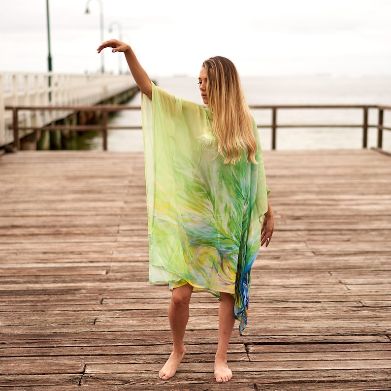 Linen Connections Trendy Silk Kaftan For Women Long Caftan Resort Wear Vacation Beach Dress Boho Silk Dress Kaftan Floral Print Gift For Her | Green