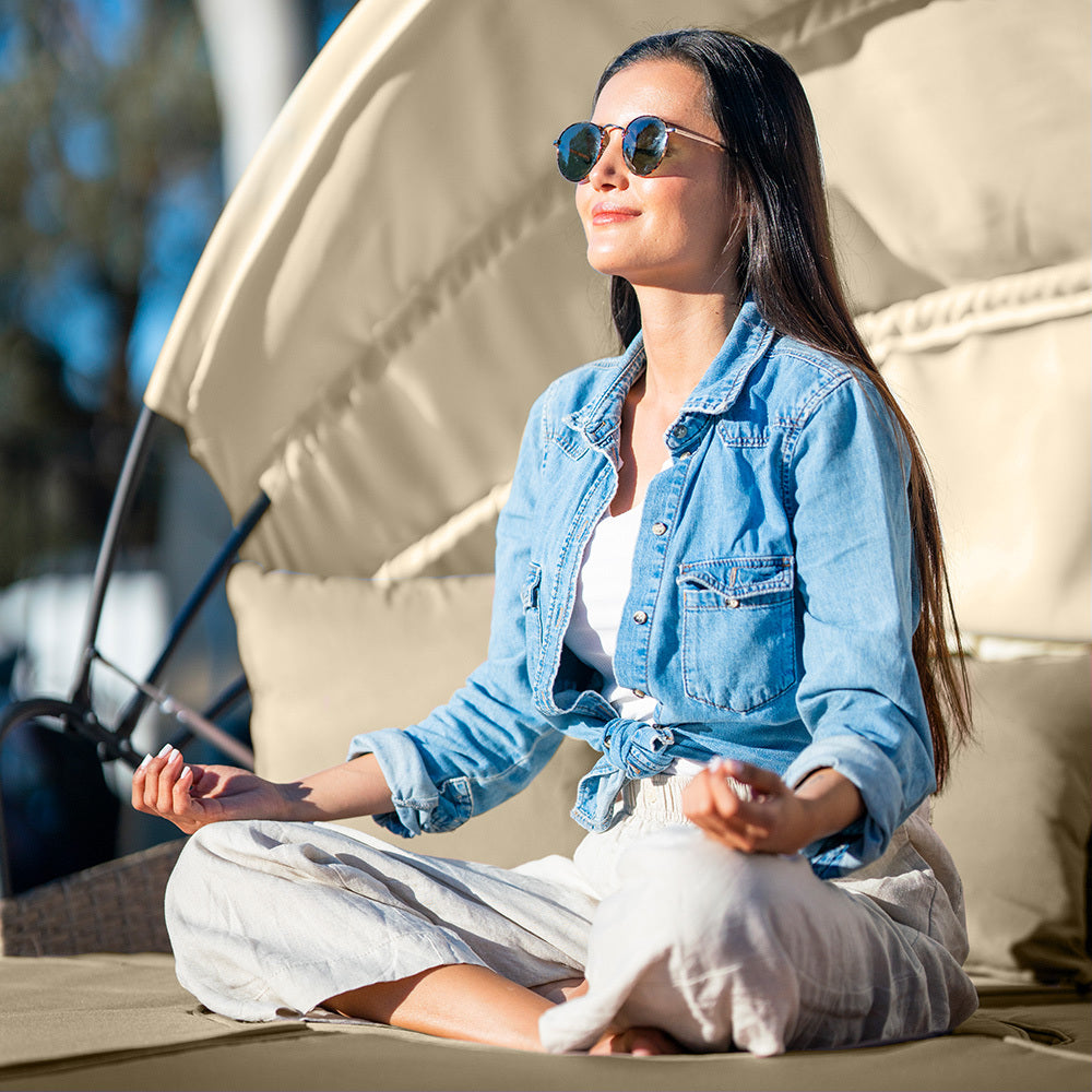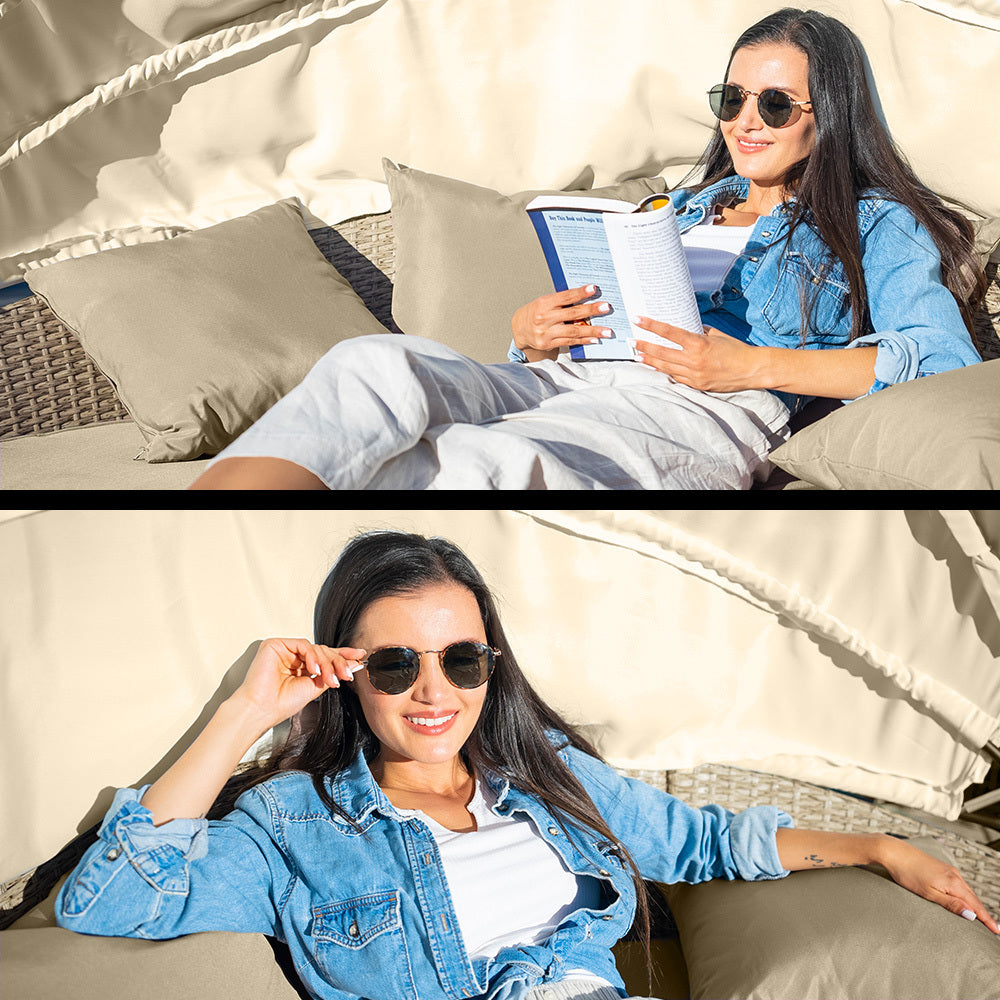 The day bed is fitted with a retractable roof canopy which can be adjusted depending on how much shade you require. This premium piece of outdoor furniture comes with four throw pillows, and is designed to stand the test of time and provide utmost comfort.