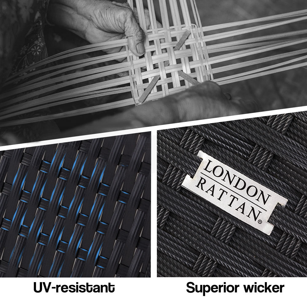 Lay back and be transported to an oasis in no time with the London Rattan Sun Lounge. Not only is its stylish European design easy on the eye; featuring Suntech wicker, it's really easy to maintain, too. So, on those beautiful days, you can devote your full attention to what needs to be done: absolutely nothing.