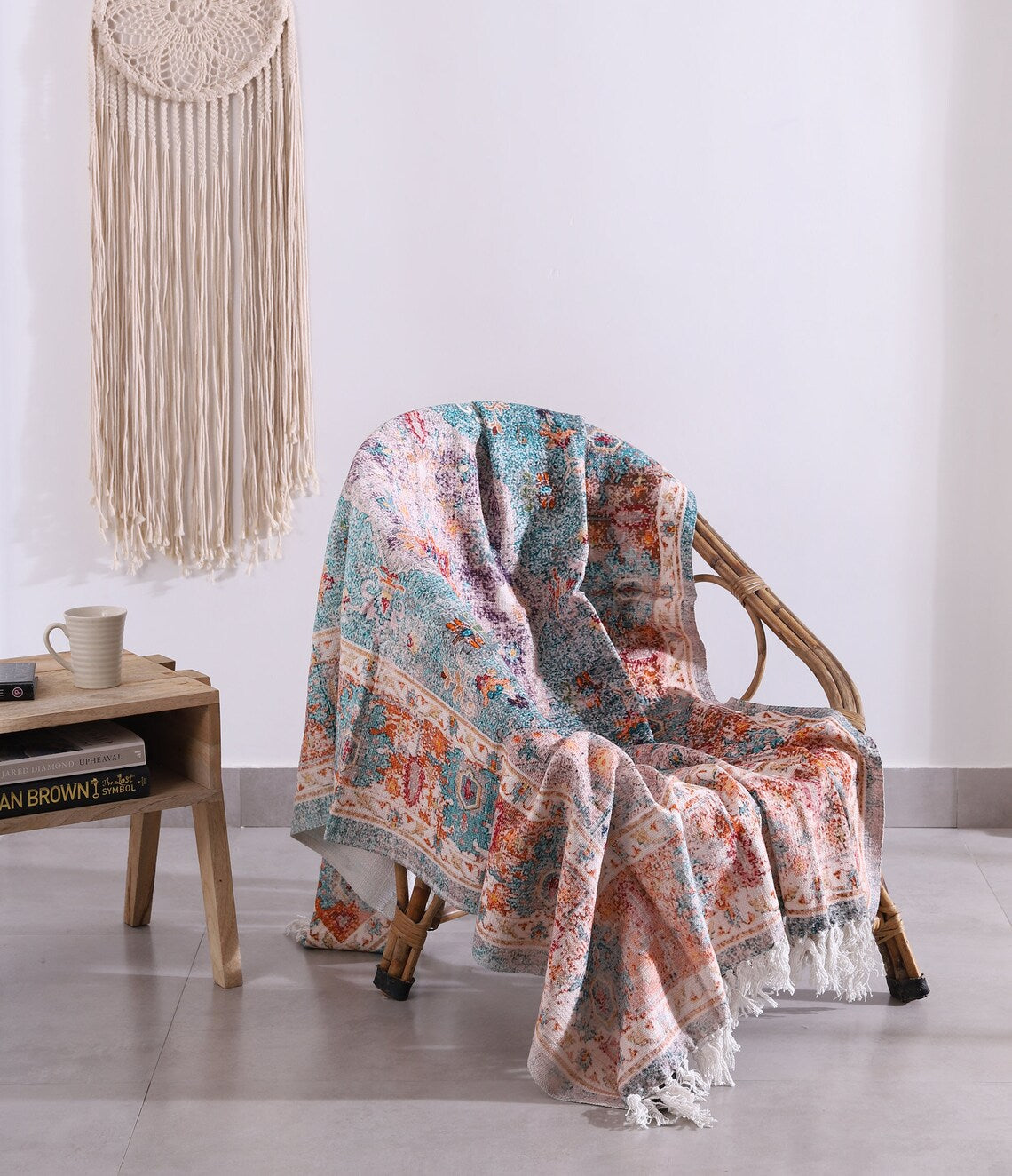 Luxury Rustic Cotton Wool Throw Rug Blanket Quilt Large Picnic Throw Rug Gift Valentines Mothers Day Easter Boho Throw Home Decor