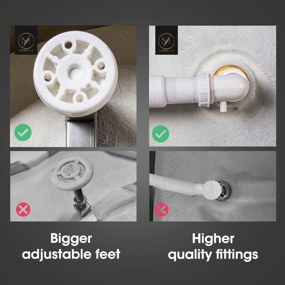 Marbella's premium pure acrylic technology provides superb thermal insulation and with a generous depth of 470mm you will enjoy a long deep soothing soak. Marbella bath designs are also highly rigid with comprehensive multi-layer reinforcement and an internal stainless-steel structure.