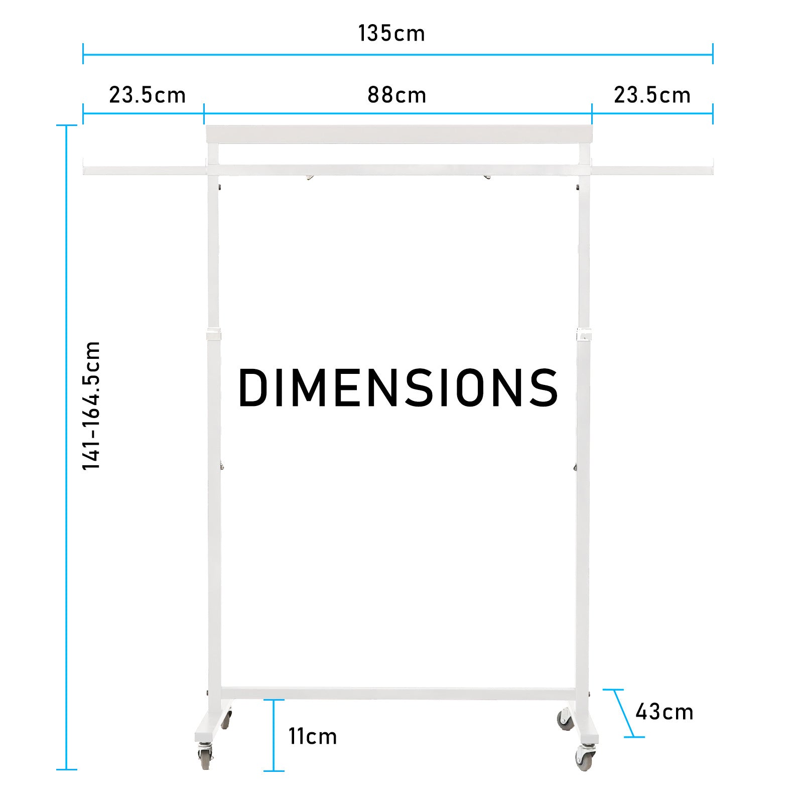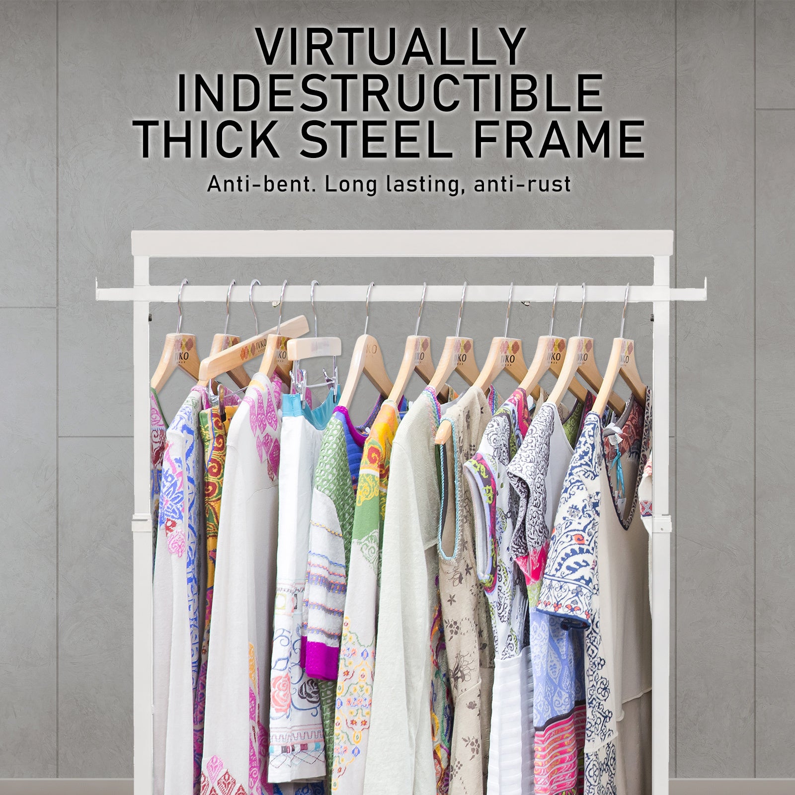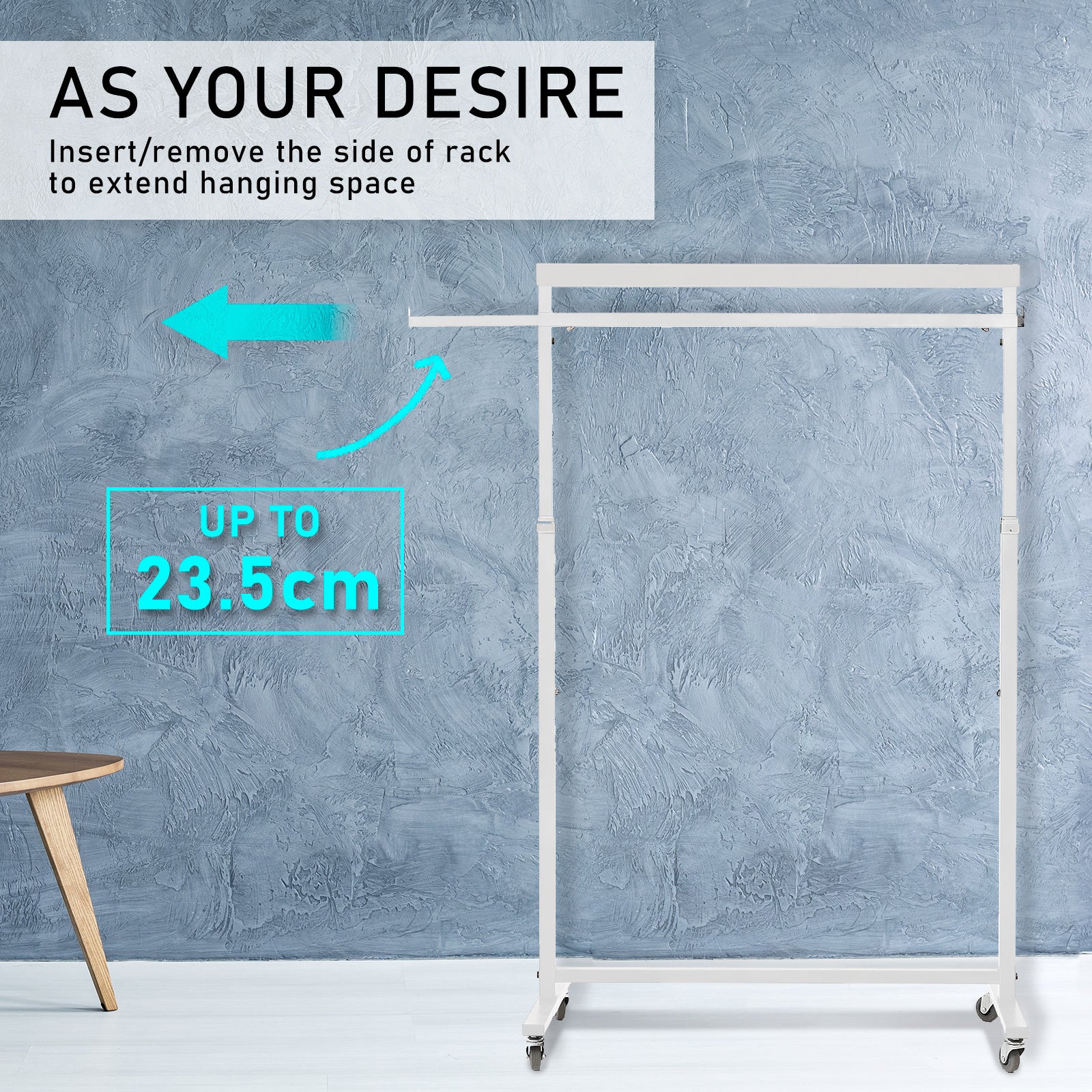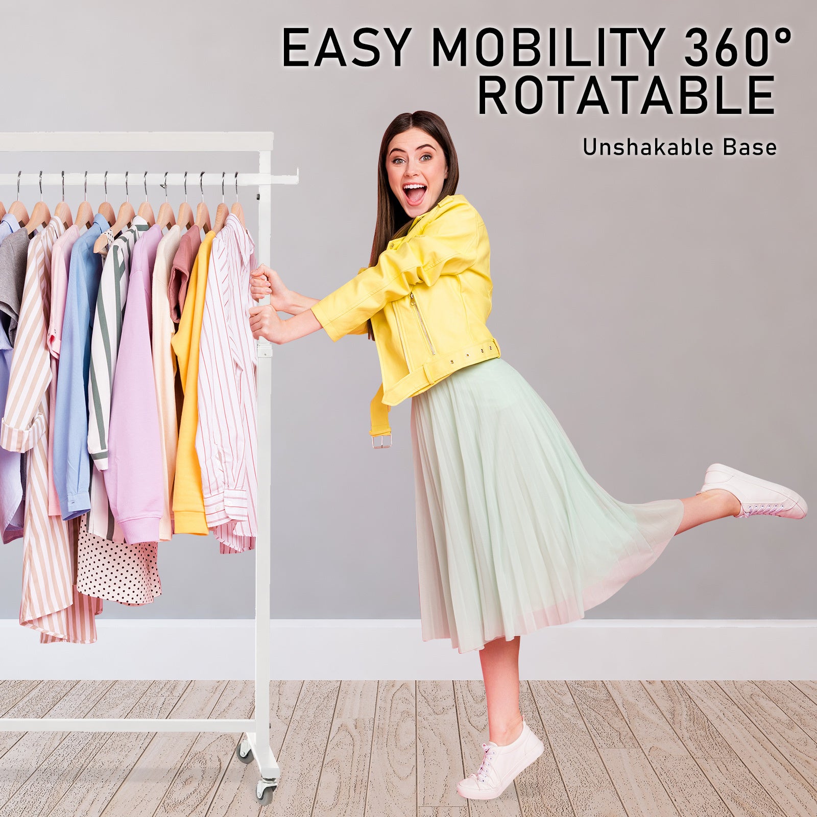 Meoktong Clothes Rack Coat Stand Hanging Adjustable Rollable Steel - White