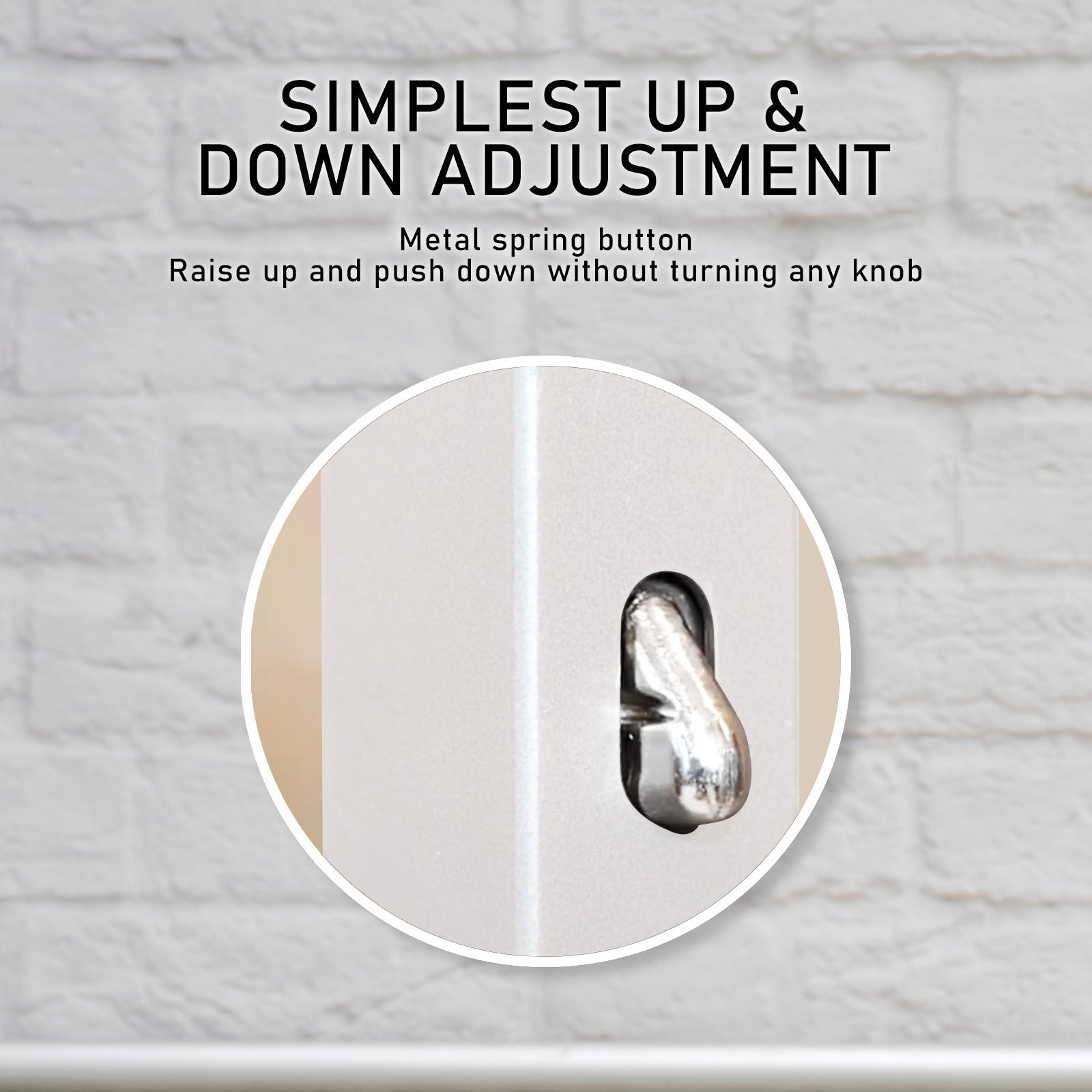In terms of height adjustment, it can be done without tightening any knob. Raise it up and pushing it down is super handy according to your desire. The rods are equipped with 4 adjustable heights to suit users/objects of different heights.