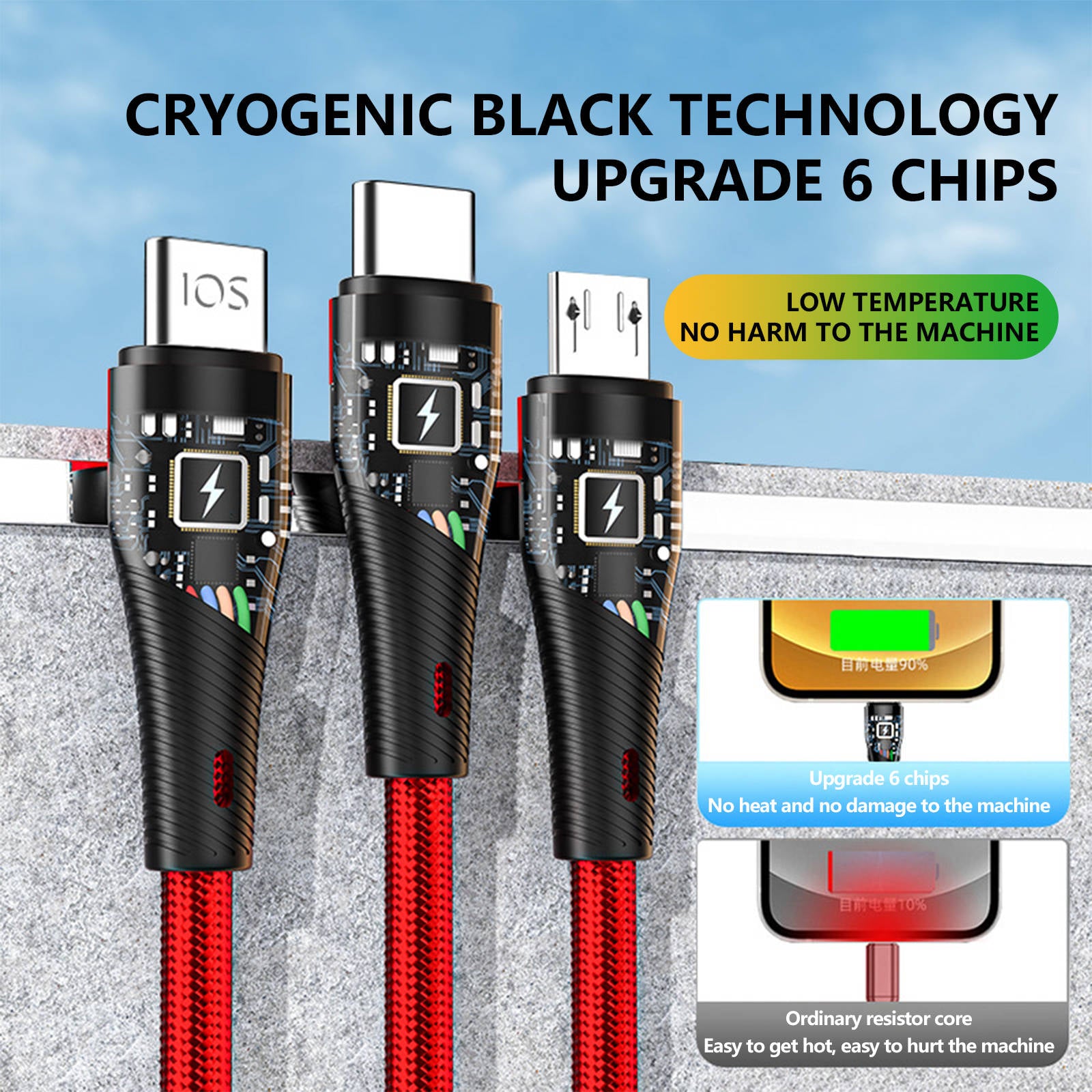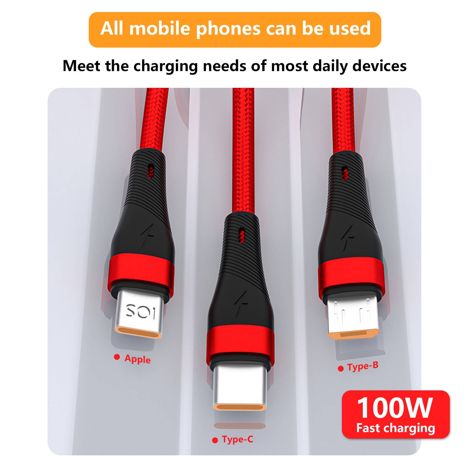 Mobax Nylon Woven 100W Super Fast Charging 3-in-1 USB Charger Charging Cable Red