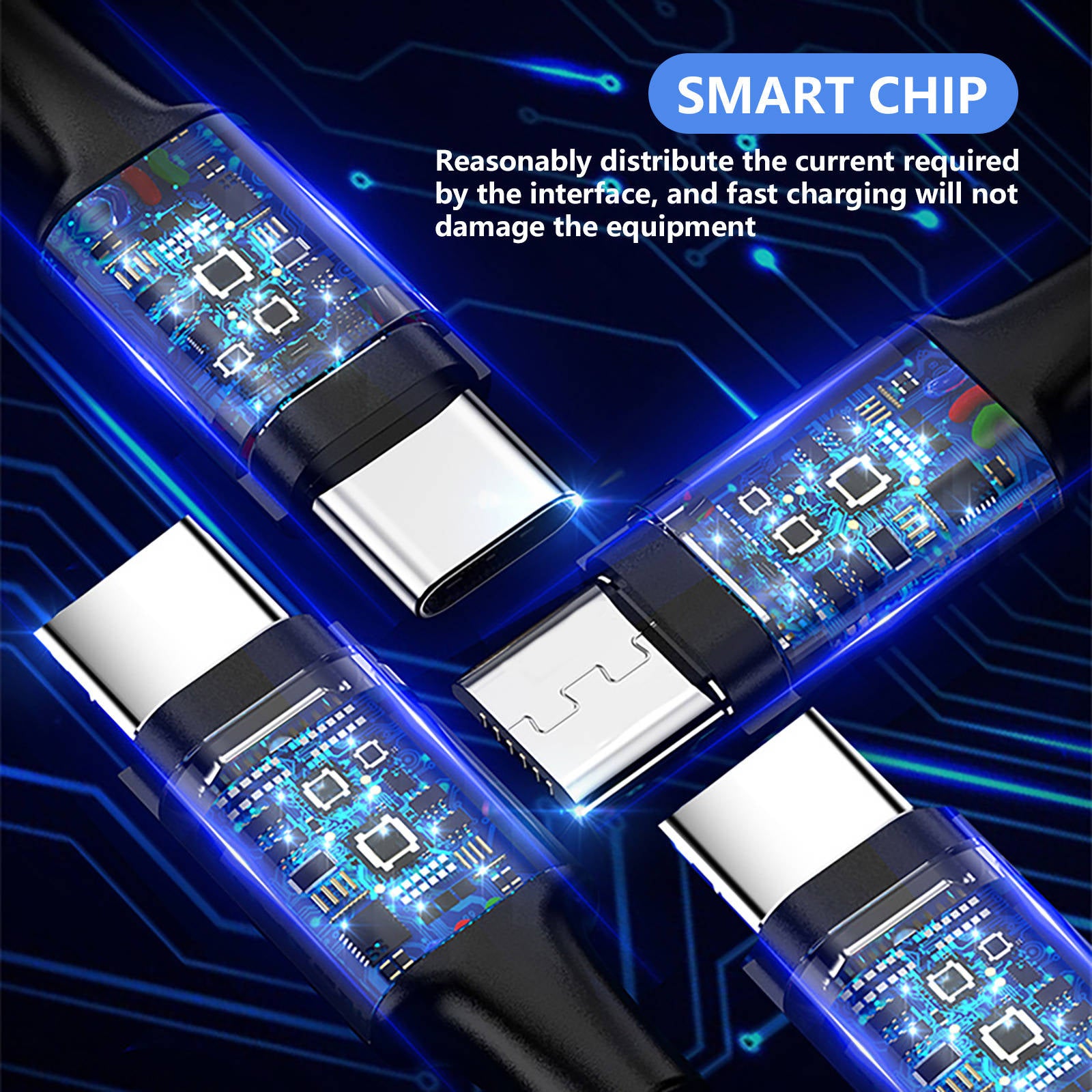 The 4-in-1 Cable is a versatile and convenient charging solution for all your devices. With its braided design, this cable is durable and long-lasting. The cable supports charging for Apple products as well as Micro USB and USB-C devices, making it a universal option for charging your devices. The compact size of the cable makes it easy to carry on-the-go, ensuring that you never run out of power for your devices