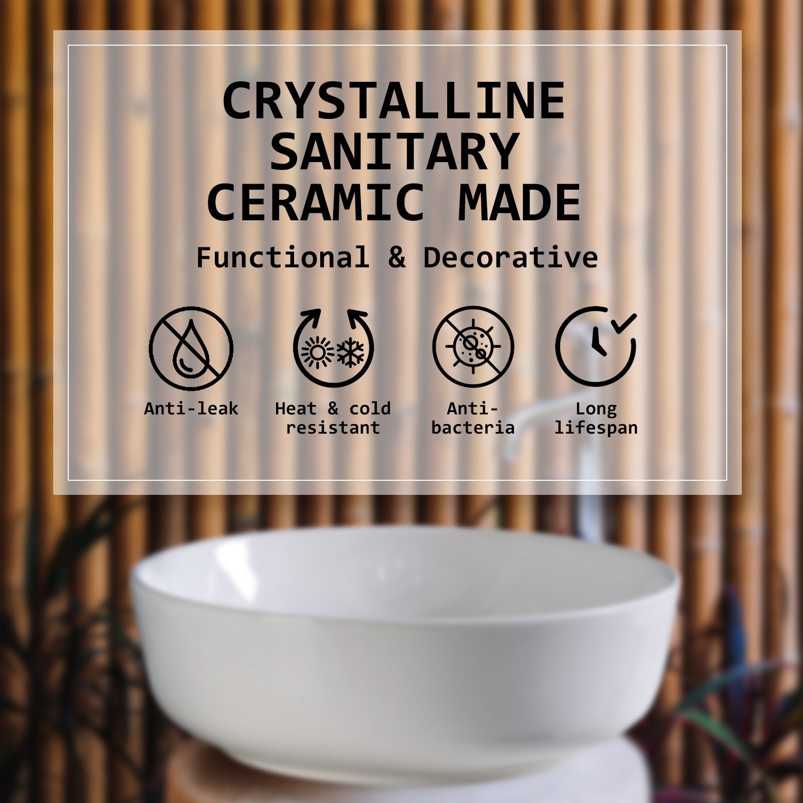 Muriel Ceramic Bathroom Basin Vanity Sink Round Above Counter Top Mount Bowl 42 x 42 x 13.5cm - White