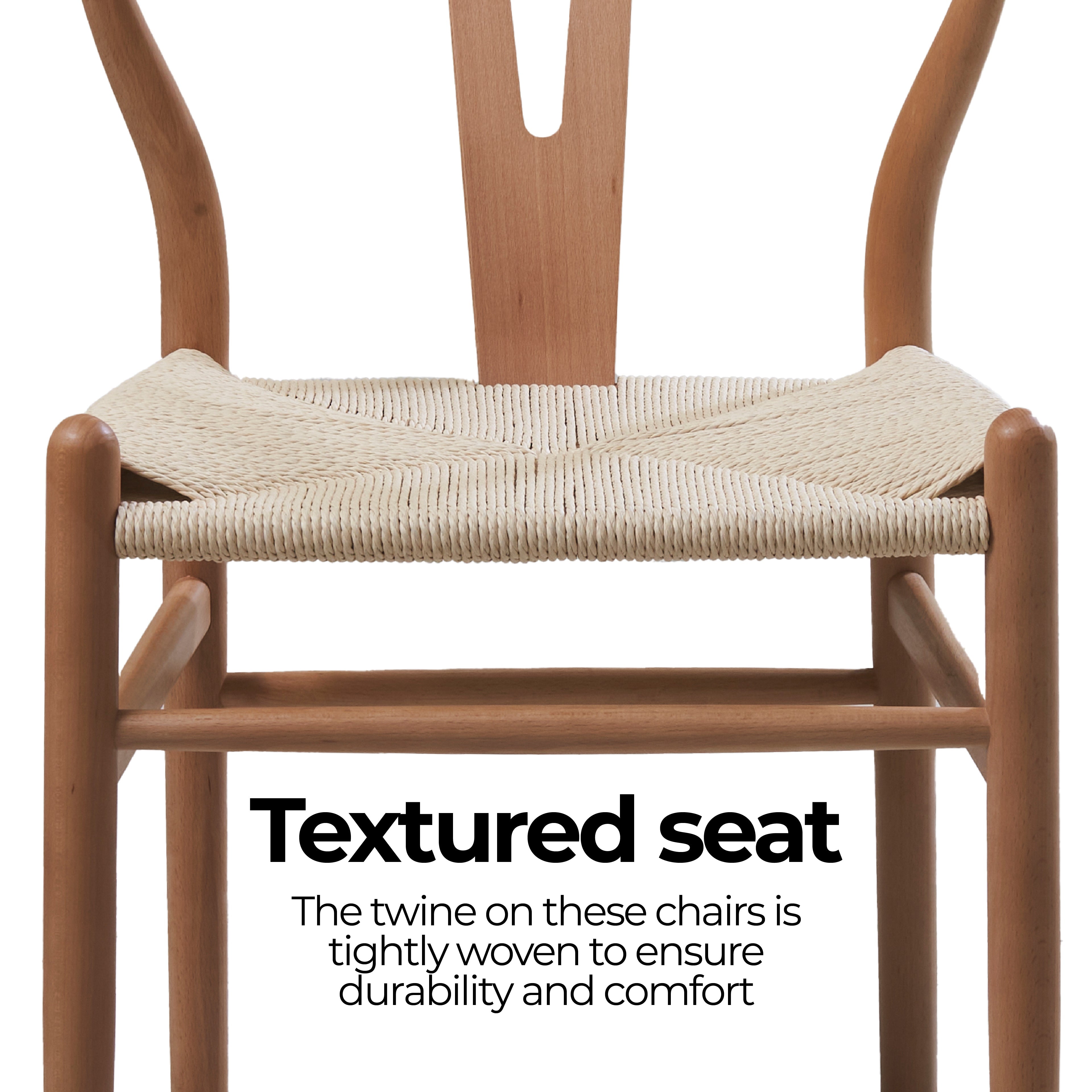 The Hans Wegner Replica Wishbone Chair boasts a sturdy frame made from high-quality beech wood, which not only provides exceptional durability but also adds a touch of natural warmth and charm to your space. The beech wood frame is expertly crafted and finished, highlighting the intricate wood grain patterns that make each chair unique & the ergonomic design of the seat ensures a comfortable sitting experience, making it an excellent choice for long dinners or extended work sessions. The comfortable seat is meticulously woven from premium twine, creating a supportive and cozy seating experience. The tight weave of the twine offers excellent weight distribution and breathability, ensuring you can enjoy hours of comfortable sitting without any discomfort.