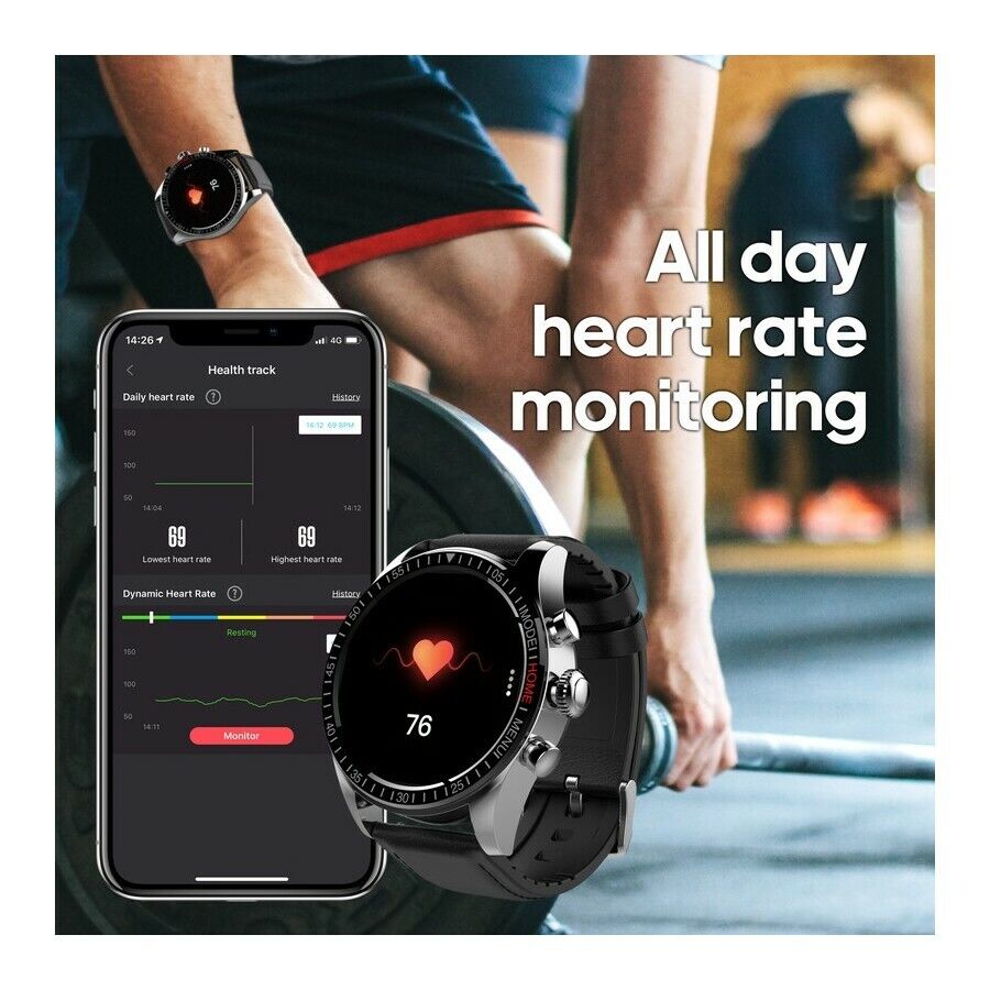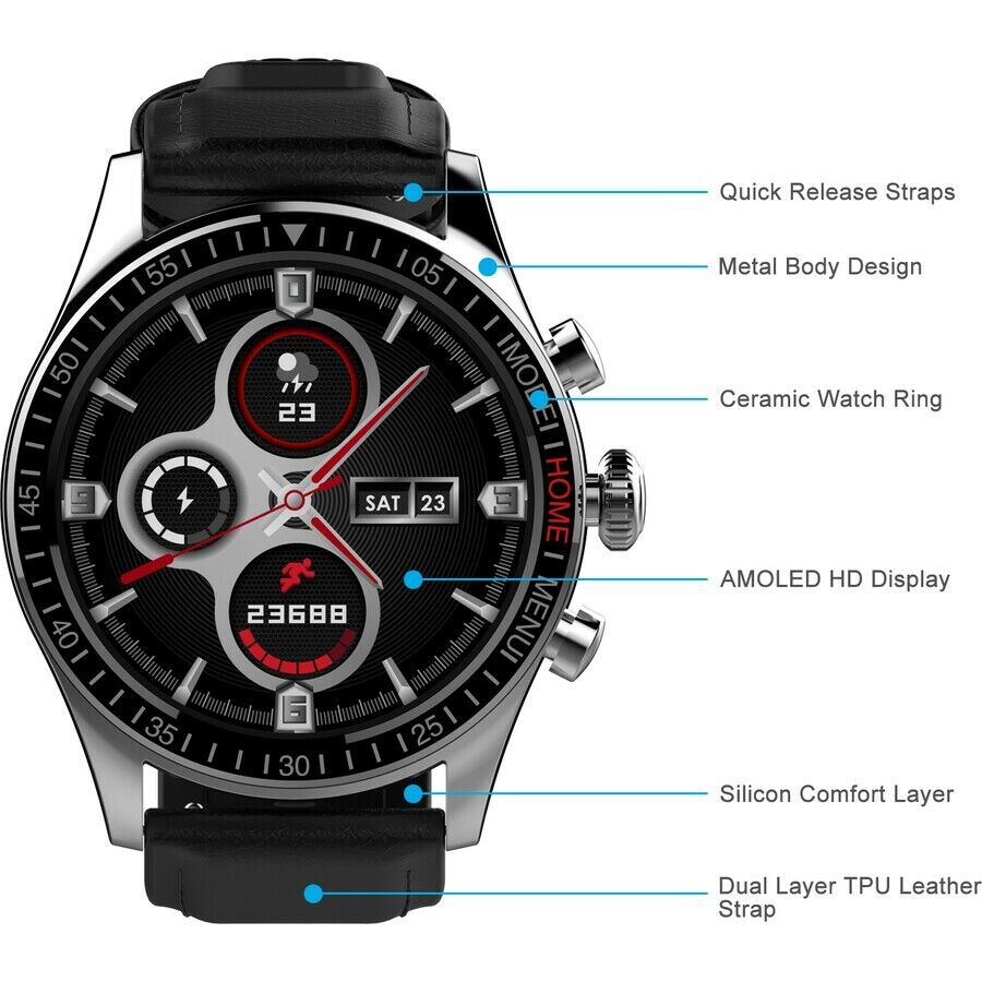 This impressive and stylish design Amoled Display Smart Watch features a 1.3inch touch screen and 44mm ceramic ring bezel.