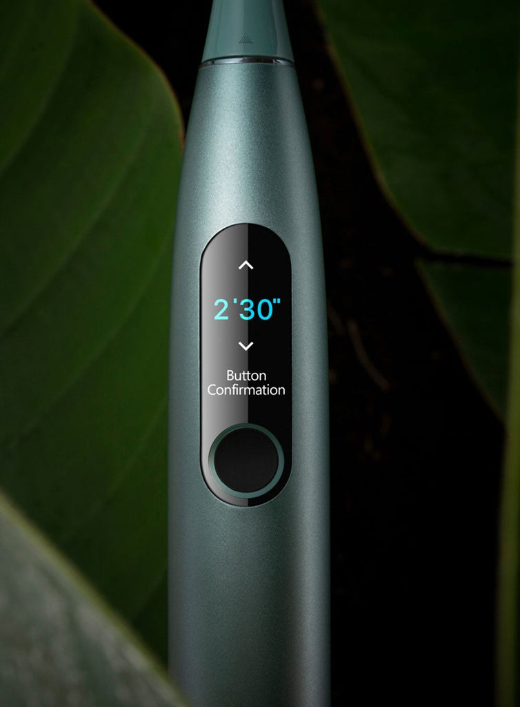 Global innovative 0.96'' color LCD touch screen for easy and intuitive operate. Simply set the mode, level and timezone with a few swipes. Monitor your teeth-brushing quality through the report directly displayed on the screen after brushing. This is the first smart electric toothbrush series to put all the information you need in your palm.