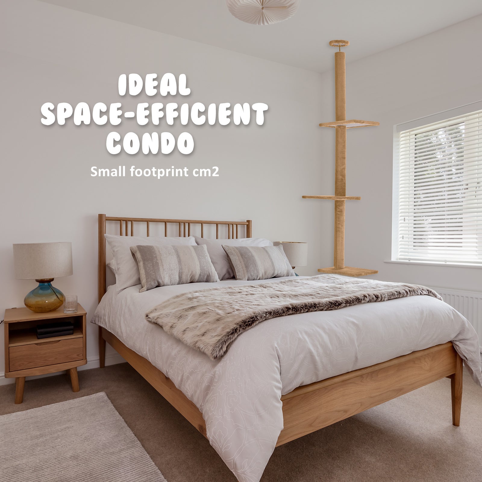 Paw Mate Cat Tree Scratcher PILLAR 278cm Adjustable Floor to Ceiling Condo Tower - Brown