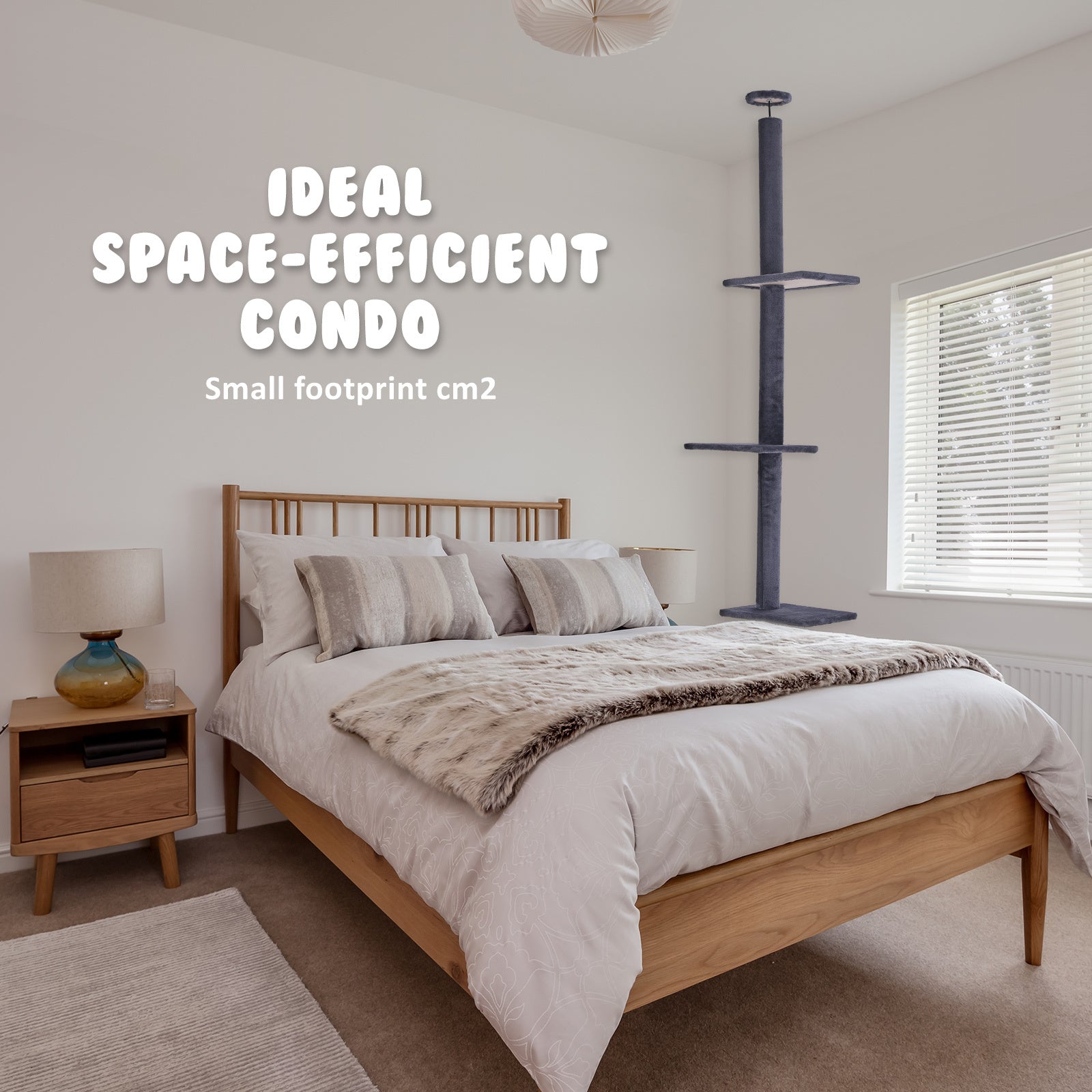 Paw Mate Cat Tree Scratcher PILLAR 278cm Adjustable Floor to Ceiling Condo Tower - Grey
