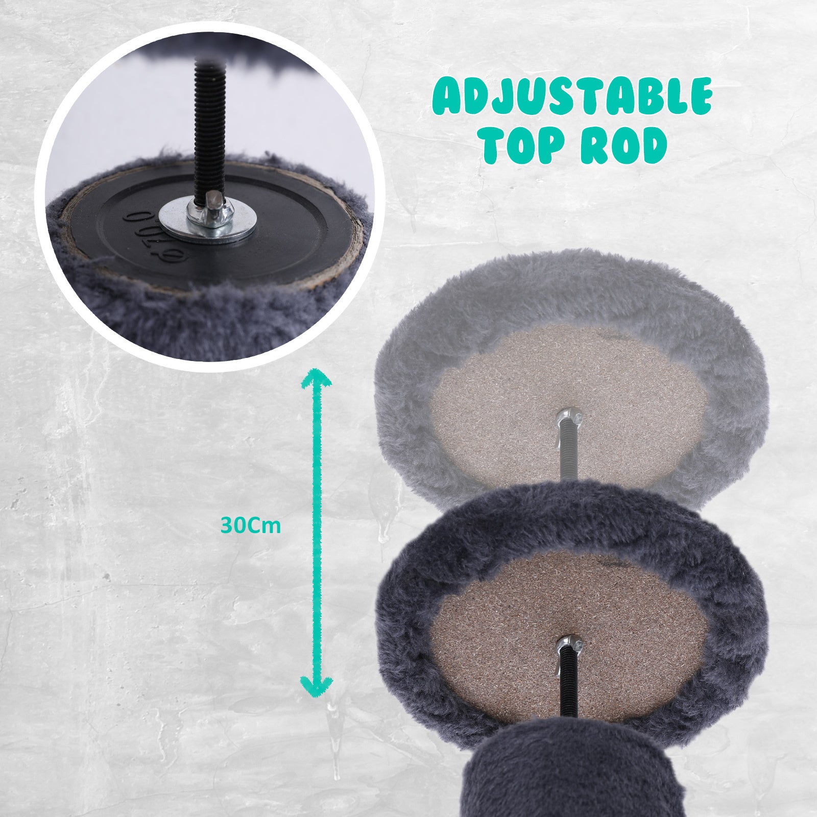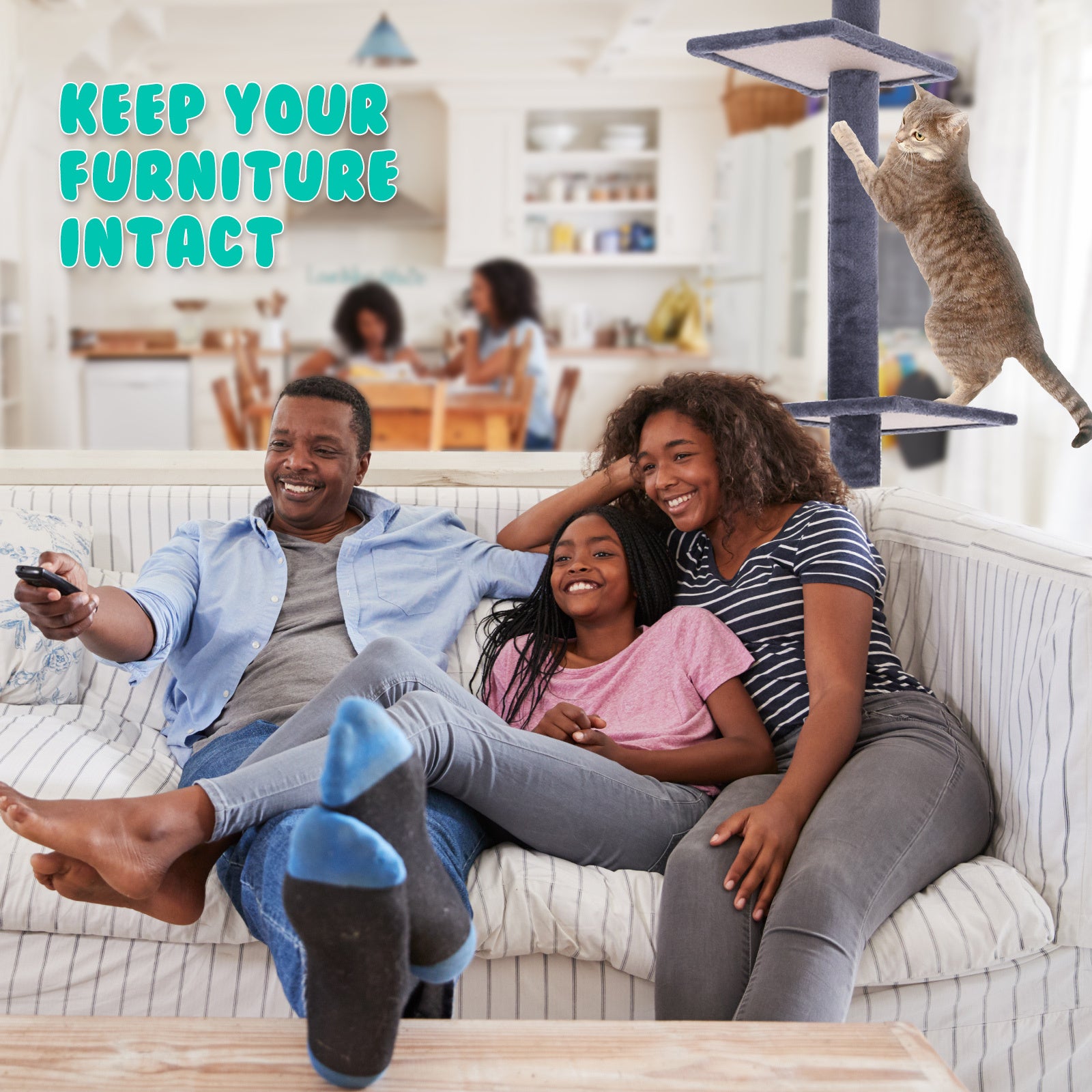 Unlike other fixed-height cat trees, it has an adjustable telescoping rod to fit most of your ceilings (ceiling height from 246cm to 278cm) and the top part is wrapped with a plush covering to protect the wall or ceiling from scratches or damage. No need to worry about finding a cat tree that matches the exact height of your room.