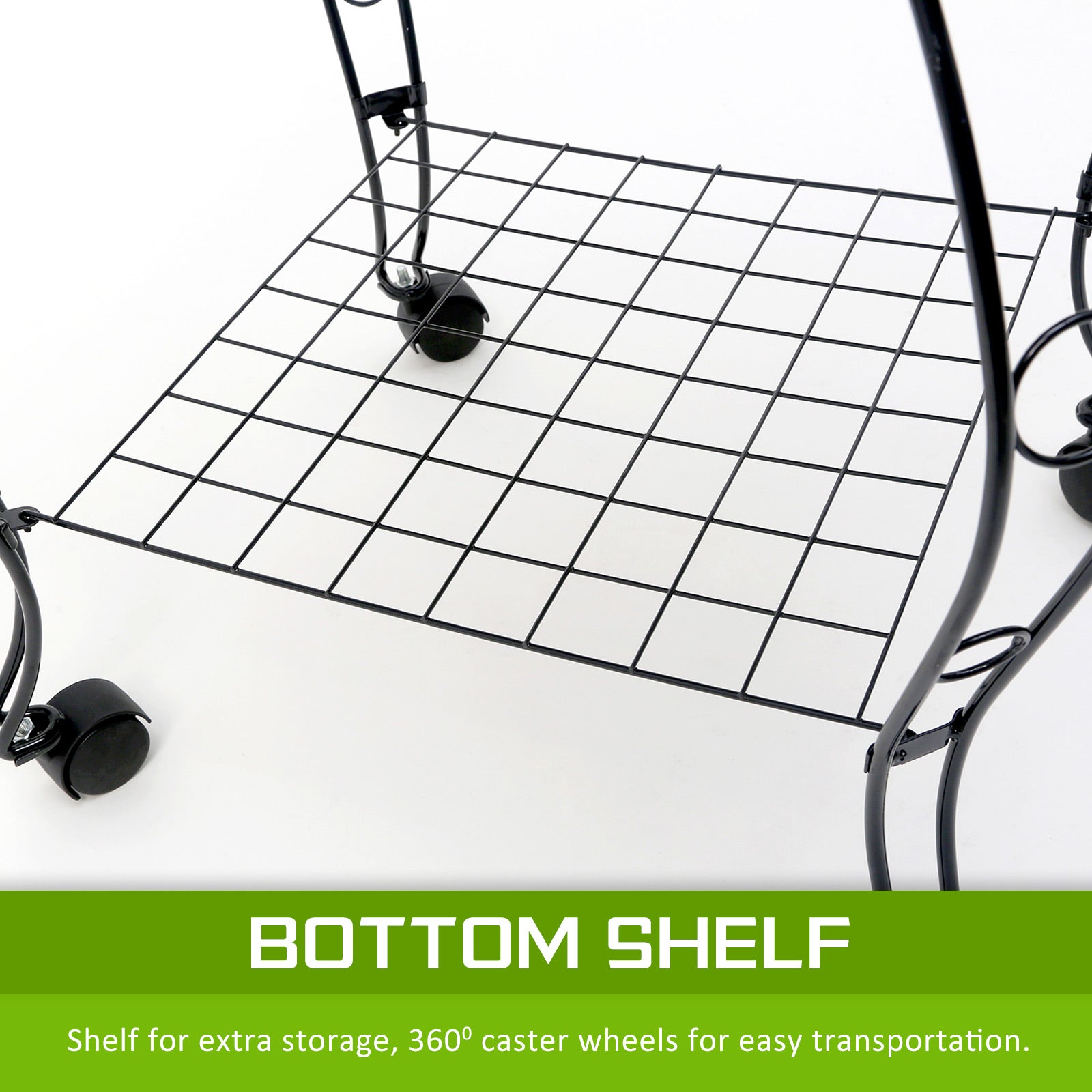 - Made of quality wrought iron and coated with black epoxy to extend durability