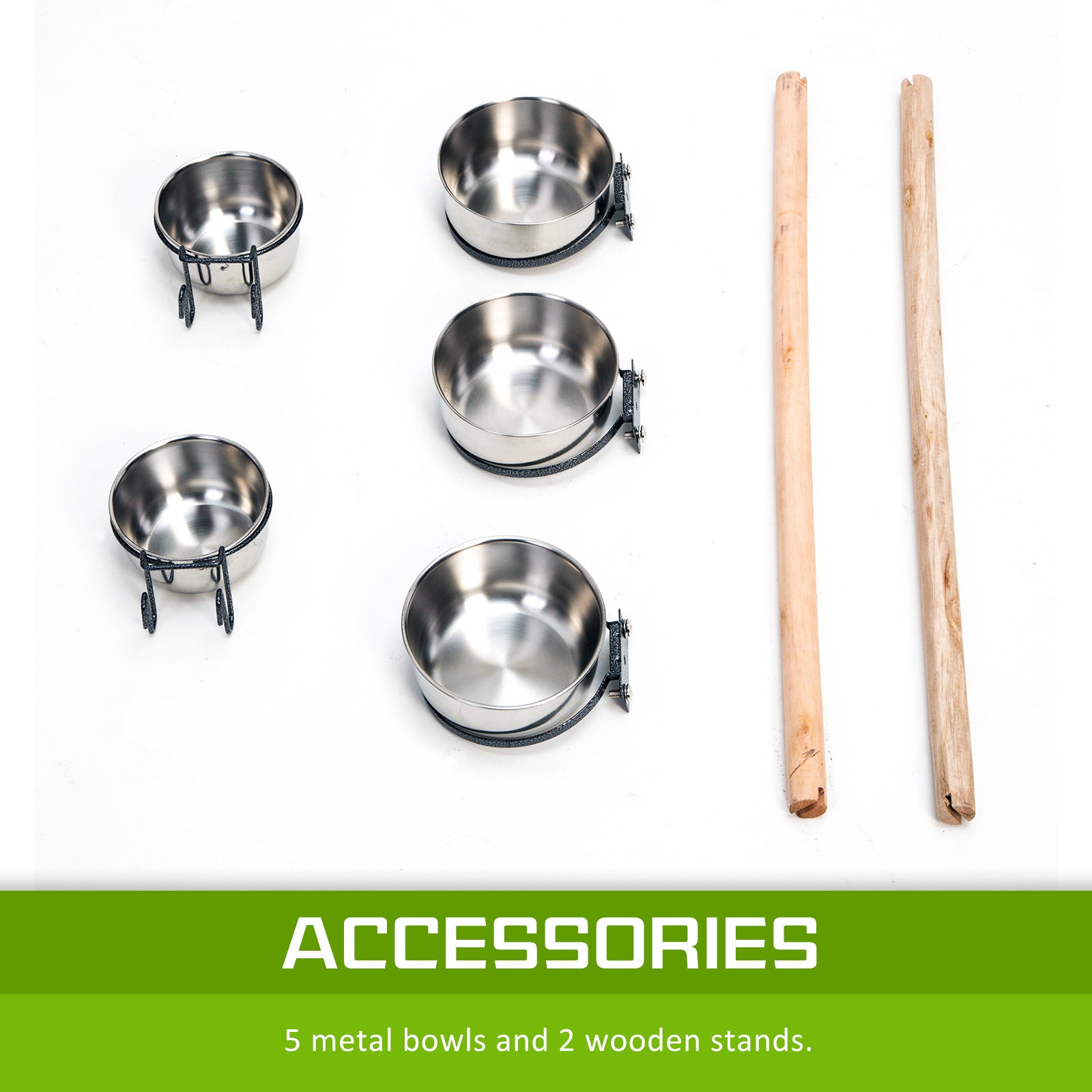 - 5 food/water bowls included