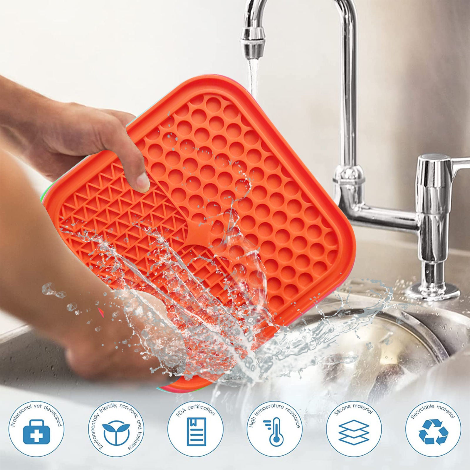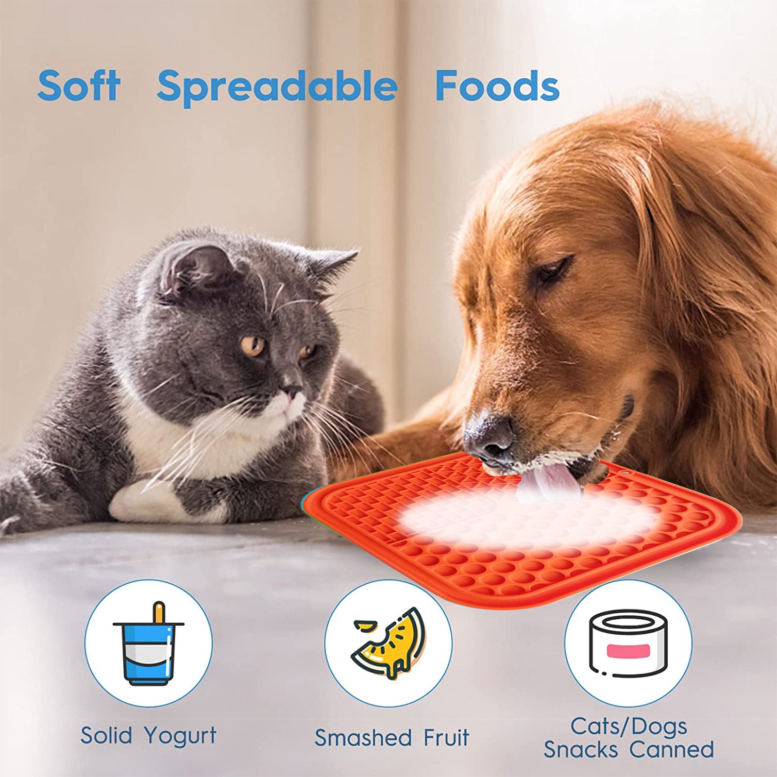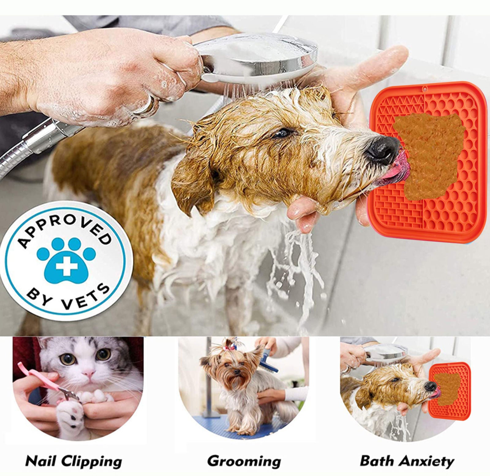 Pawfriends 3in1 Silicone Pet Lick Mat Cat Puppy Dog Slow Feeder Grooming Helper Mat Orange