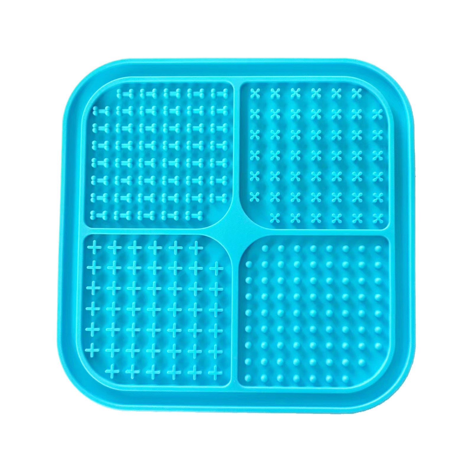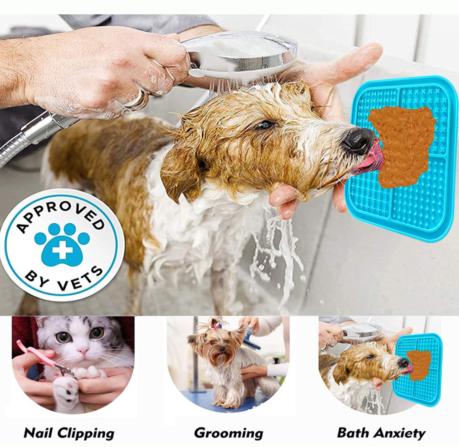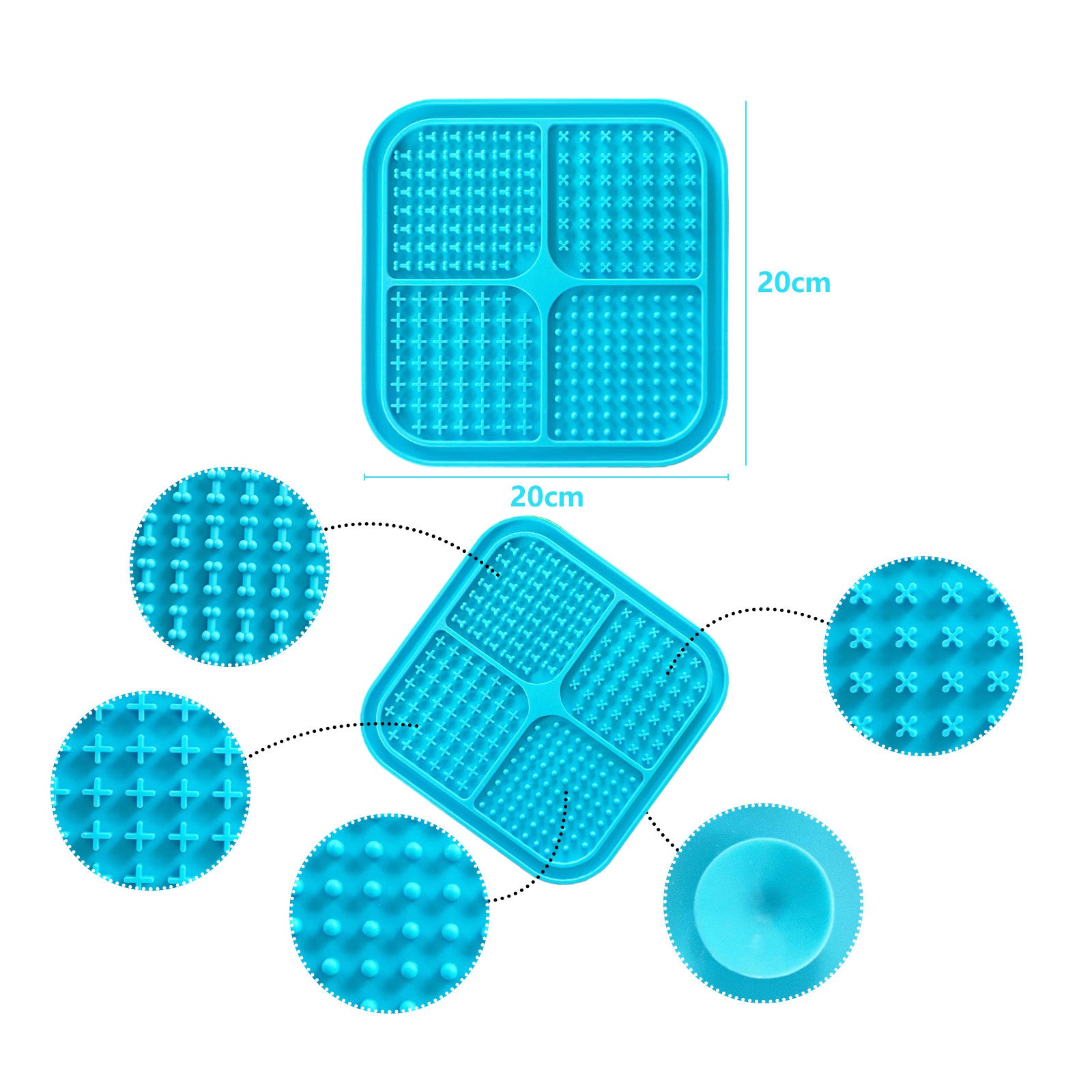 Pawfriends 4in1 Silicone Pet Lick Mat Cat Puppy Dog Slow Feeder Grooming Helper Mat Blue
