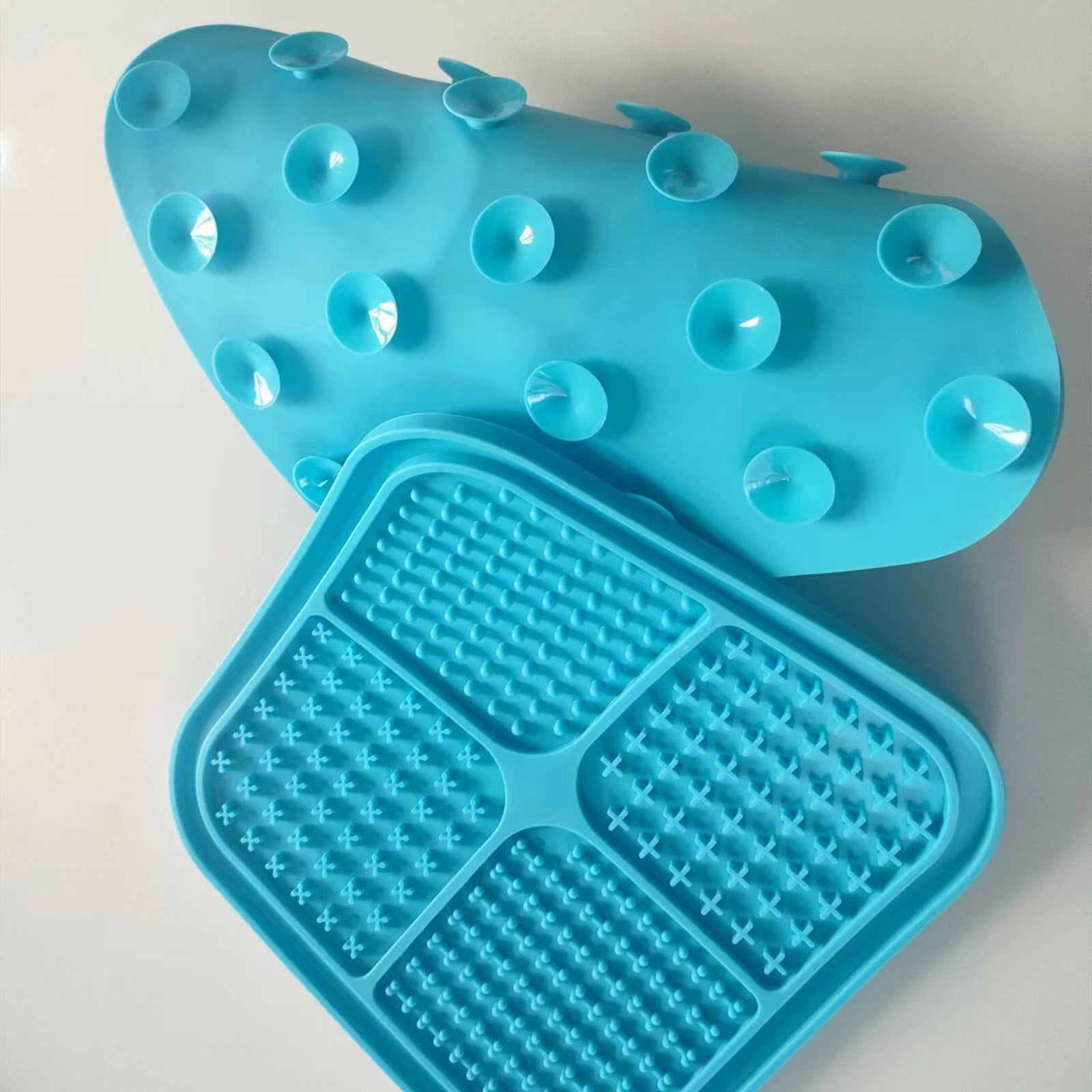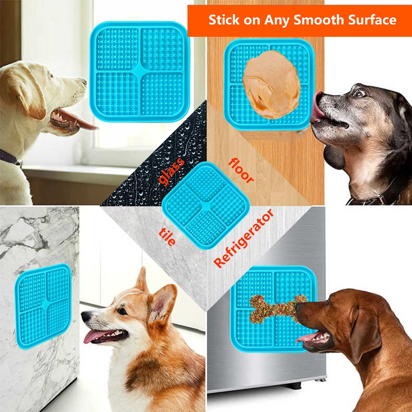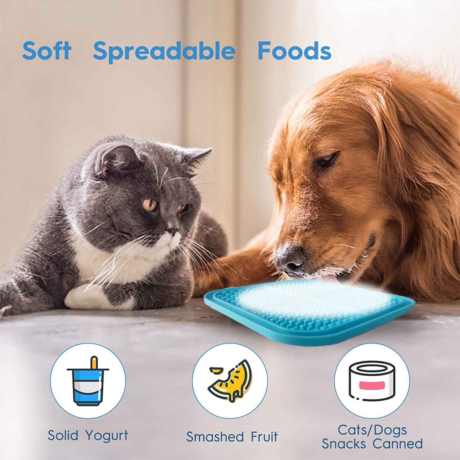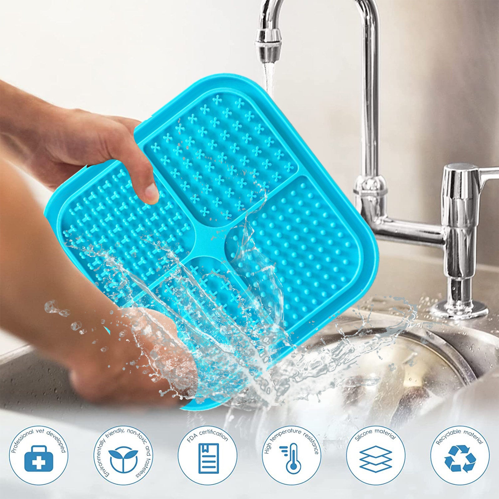 Pawfriends 4in1 Silicone Pet Lick Mat Cat Puppy Dog Slow Feeder Grooming Helper Mat Blue