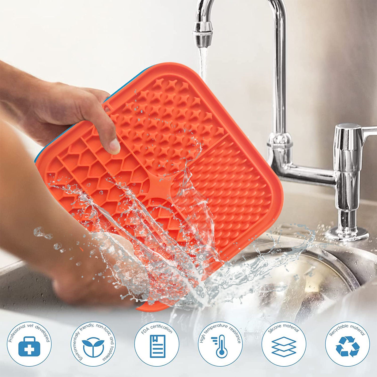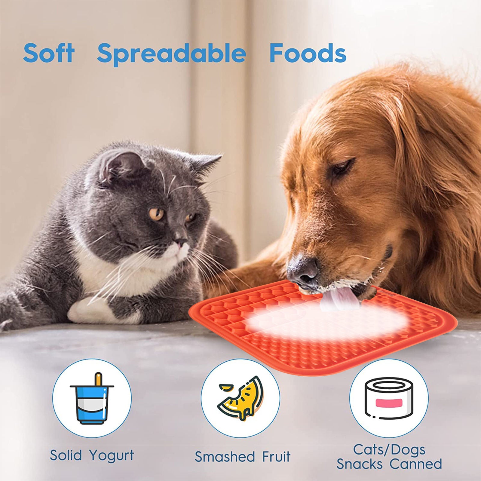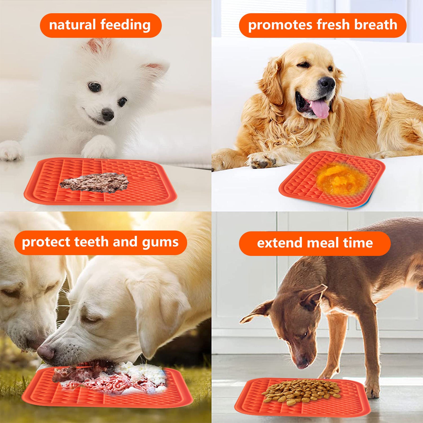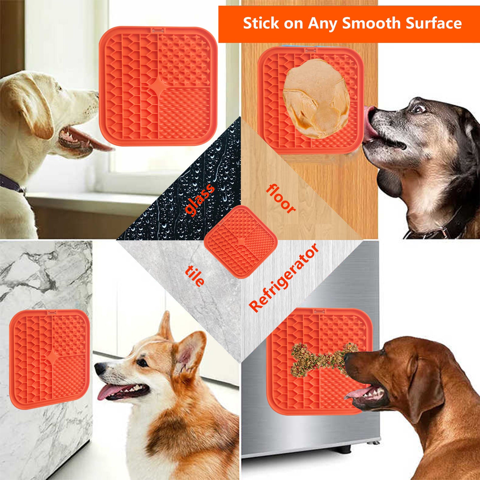 Pawfriends Silicone Dog Pet Lick Mat Anti-choking Slow Feeder Bath Grooming Helper Orange