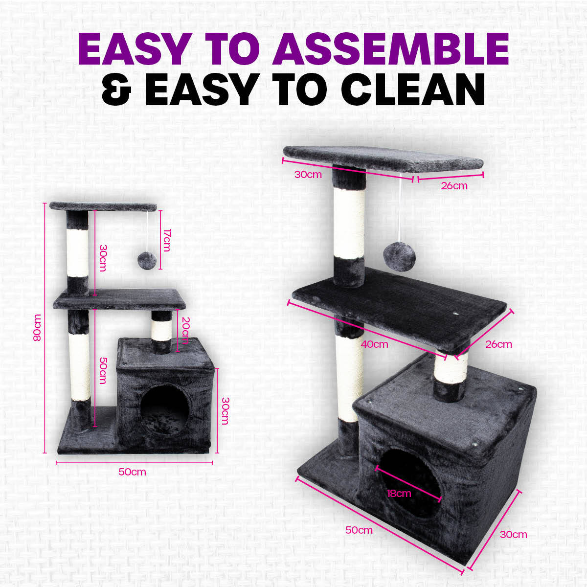 Pet Basic 3 Level Cat Scratching Tower & Playhouse Scratch 80 x 40 x 50cm