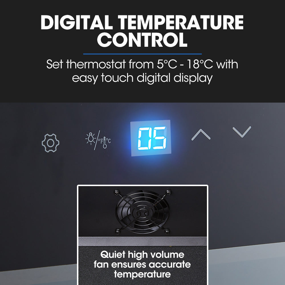 The PolyCool Noir Plus 95L/34 Bottle Wine Chiller Fridge has everything you need to enjoy refreshing and chilled wine anytime. This wine cooler has the latest direct compressor technology to keep the temperature perfect for your favourite vintage. The generous 95L capacity means you'll have more than enough room to store your best vintages. It has sliding shelves to make sure your favourite varietals are handy. The shelves are also removable so you can chill large format bottles. The PolyCool Noir Plus makes sure you are ready for any special occasion,big or small or your regular “Wine O’clock”.