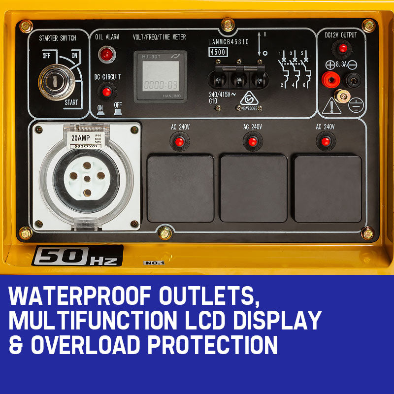 The GenPower diesel generator is perfect for home, farm and Industrial use as a portable power supply or where mains power is temporarily unavailable. Rated continuous operation is 4hrs (100% load) 6 hours (50% load). Please refer to the Service Schedule included in the Manual for more information.
