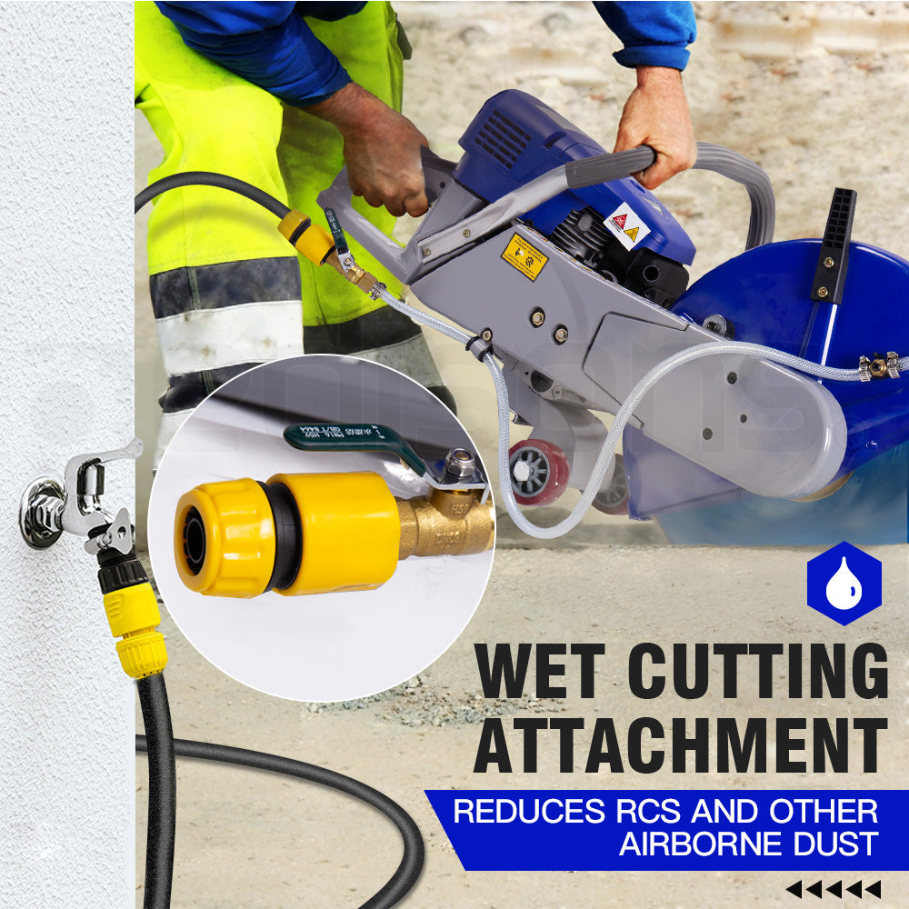 Cutting concrete, brick, tile, asphalt and similar materials produces airborne dust and RCS (Respirable Crystalline Silica) particles, which leads to serious health issues. The MX9500 is equipped with a direct hose water inlet tube delivering a modern approach to power cutting, by eliminating harmful RCS from your work environment.