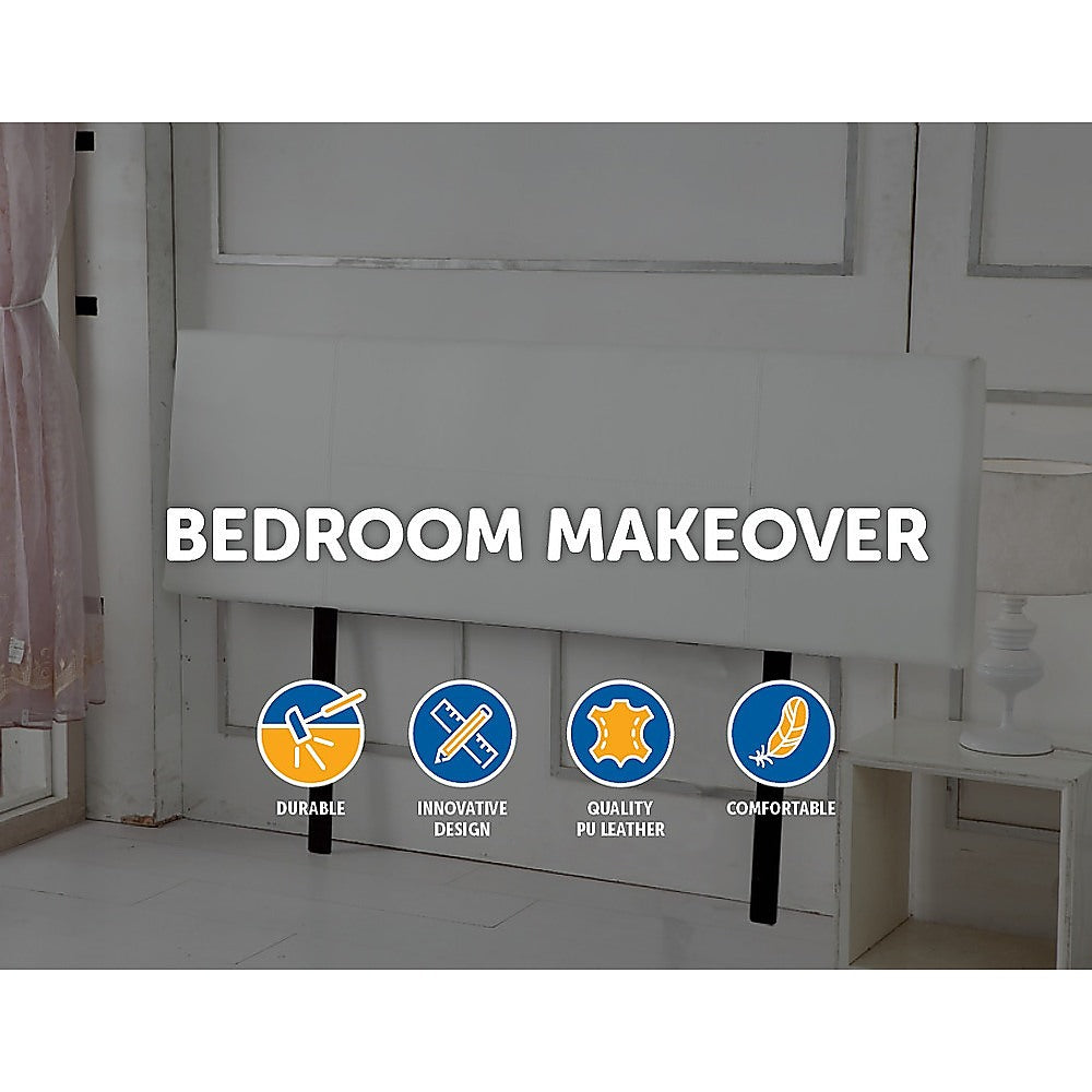 This headboard for standard King-sized bed frames is created with quality materials, including easy-to-maintain PU leather that will maintain its sophisticated look for many years to come. This particular model comes with elegant stitching accents that provide just the right level of understated pop. A neutral white will blend seamlessly with a wide variety of bed frames and other bedroom furniture.