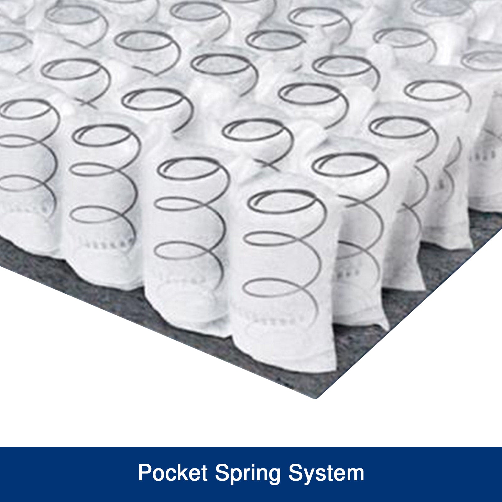 Individual Zoned Pocket Springs works independently that provides appropriate levels of support to different areas of the body (such as the head, chest, hips or ankles) based on weight. This is 6 Turn Coil System with each independent operating coil you will feel less movement from your partner unlike a traditional inner spring that has interconnecting wires between coils.