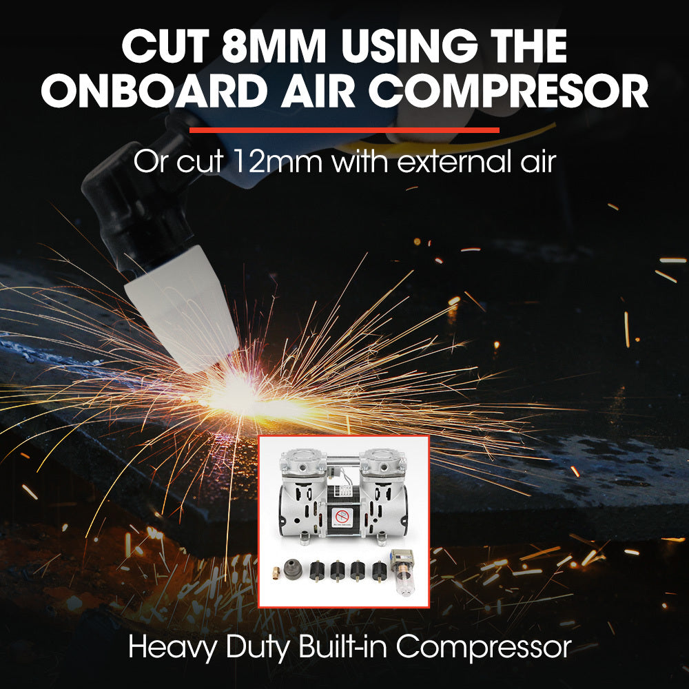 This awesome 'Go anywhere' gas plasma torch has no need for bulky gas tanks, it has an onboard air compressor. You can easily cut 12mm deep through a variety of metals, steel;