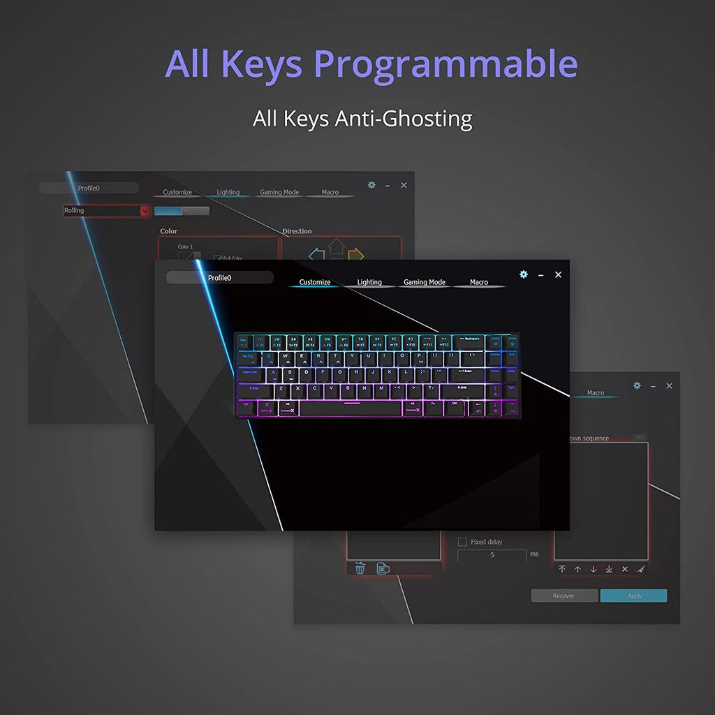 18 RGB backlight modes, 8 monochrome backlight modes and 5 full color backlight. These modes will give you more enjoyable when you gaming or typing at night.