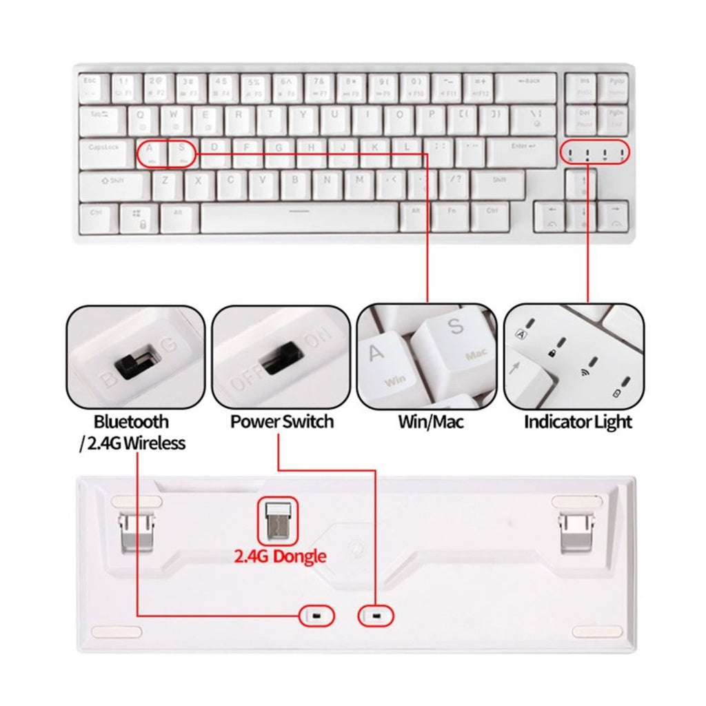 Royal Kludge RK871 (RK68 PLUS) Wired Tri Mode Bluetooth RGB Hot Swappable Mechanical Keyboard White (Brown Switch)