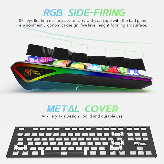 Royal Kludge RK G87 87 Keys Dual Mode Non Hot Swappable Mechanical Gaming Keyboard Black (Blue Switch)