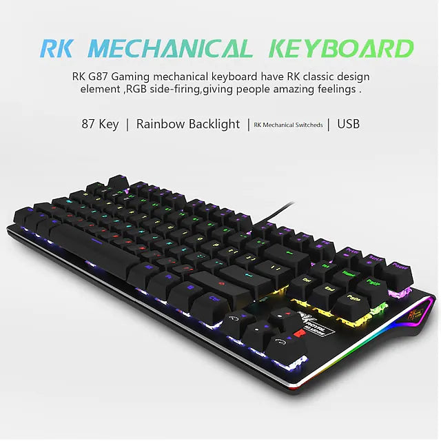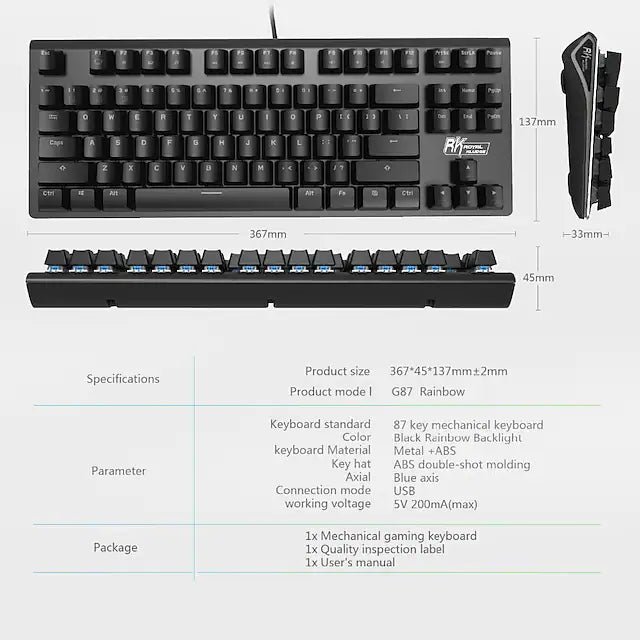 87 keys, full n-key rollover, and can be locked WIN keys in gaming, 12 combinations of multimedia keys, you can use in working and gaming.