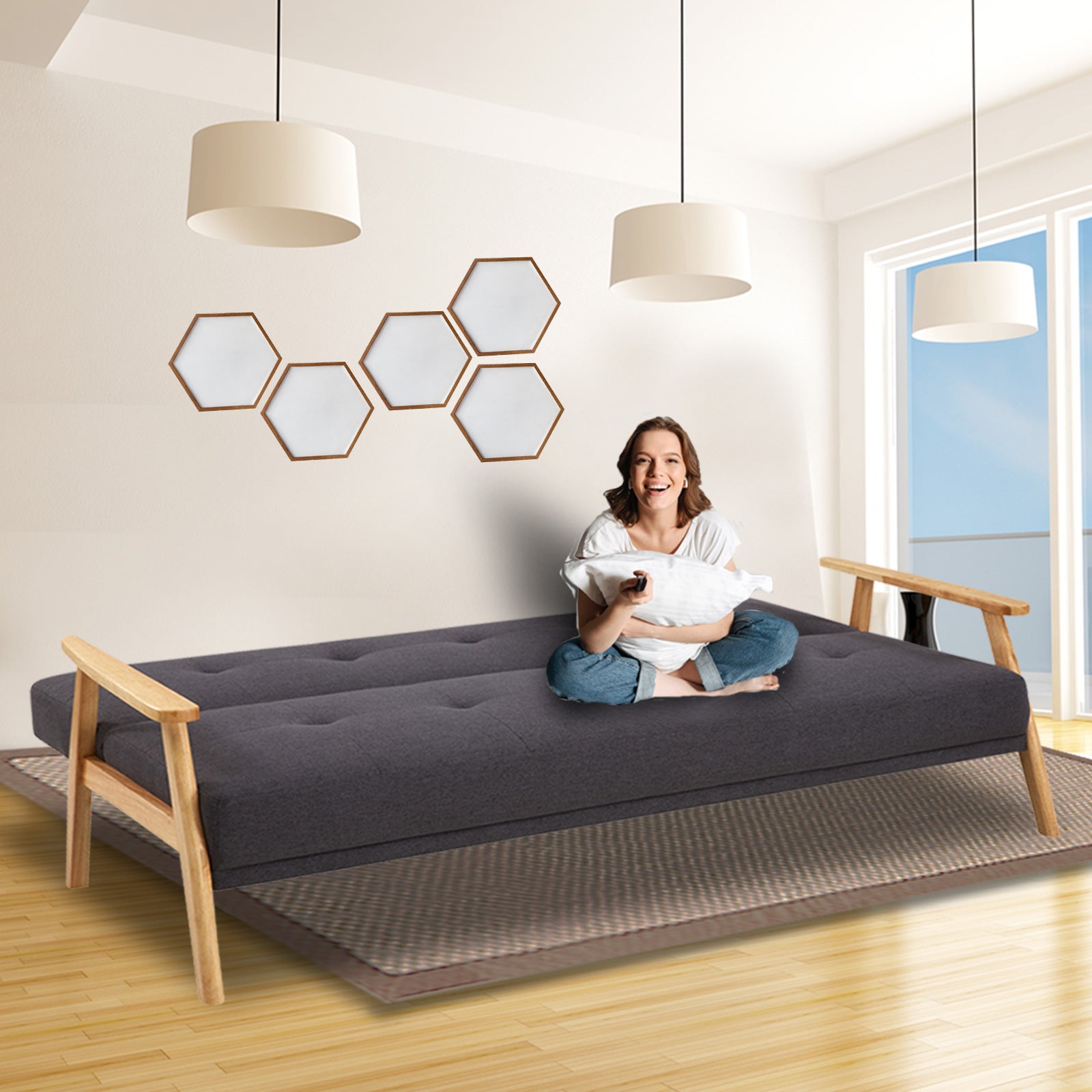 It's easily convertible into extra bedding space for your visitors, this is designed with multi functionality in mind. It features linen fabric upholstery with thick cushioning providing superior comfort. Highly practical and served with a contemporary flair.