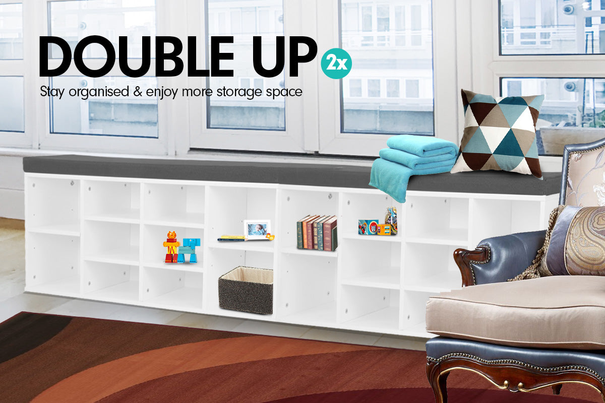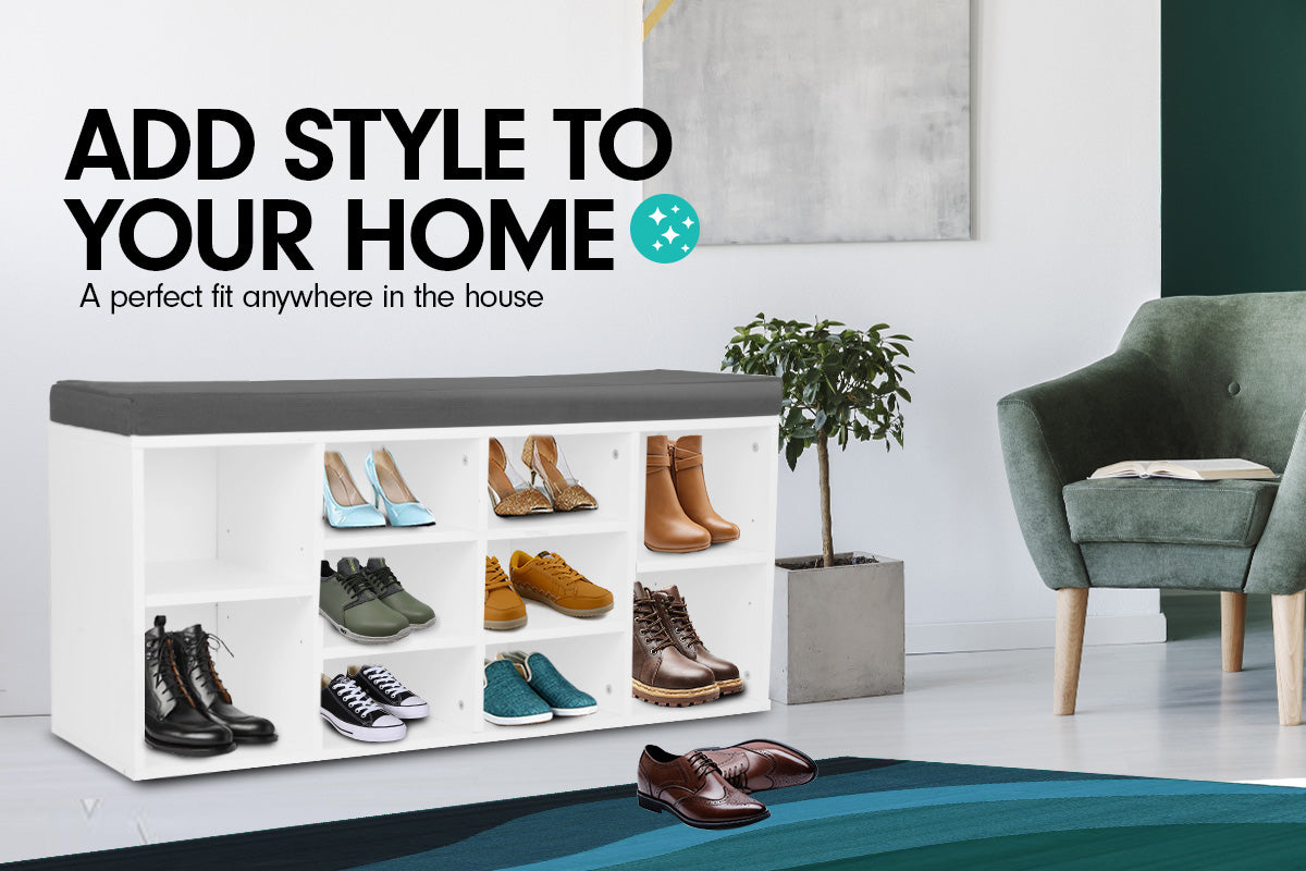 Eliminate the appearance of clutter and create a neat, organized space with this  shoe cabinet with padded bench.