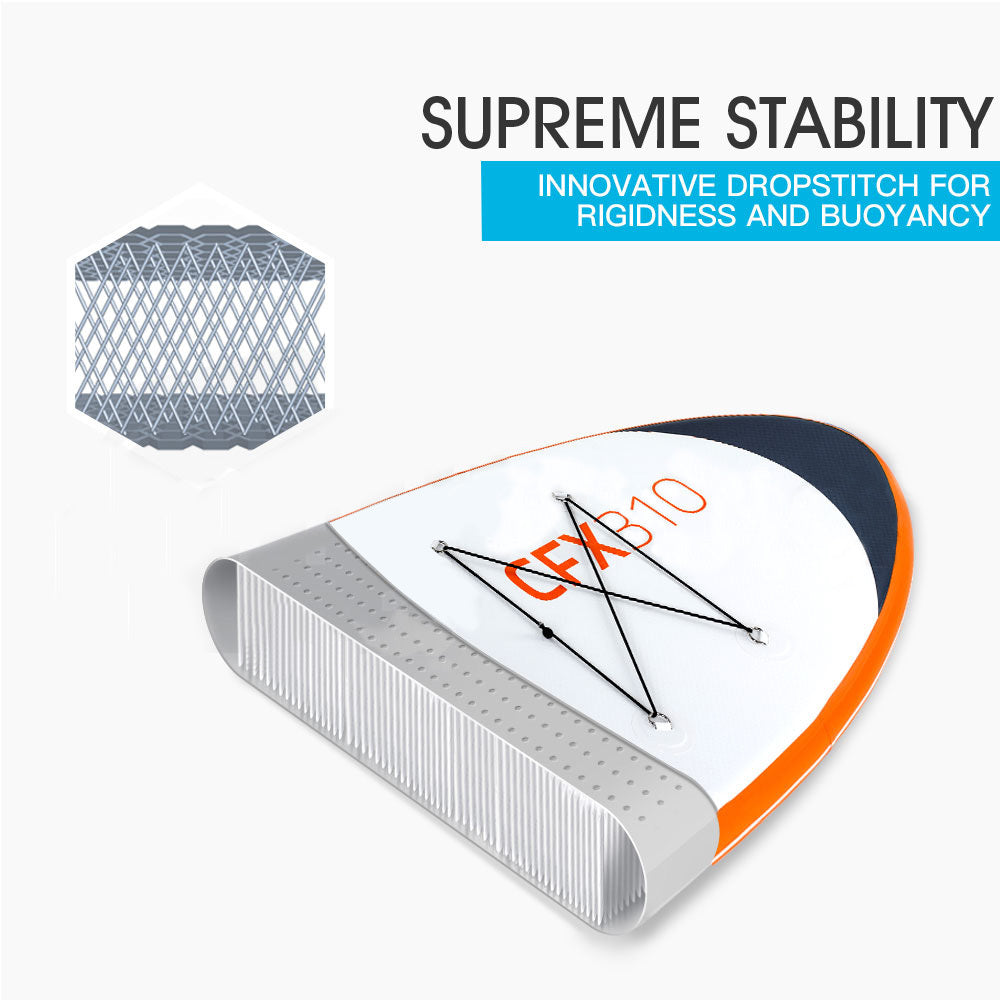 Ideal for people of all skill levels, this 310cm long board with a good amount of nose rocker is perfect for exploring, paddling or cruising on the ocean. Its classic all round shaped hull design provides a good mix of speed with stability. You can easily convert this inflatable paddle board into a kayak for added versatility. Whether your paddle boarding or kayaking it's an excellent way to be active, keep fit, and build core strength.