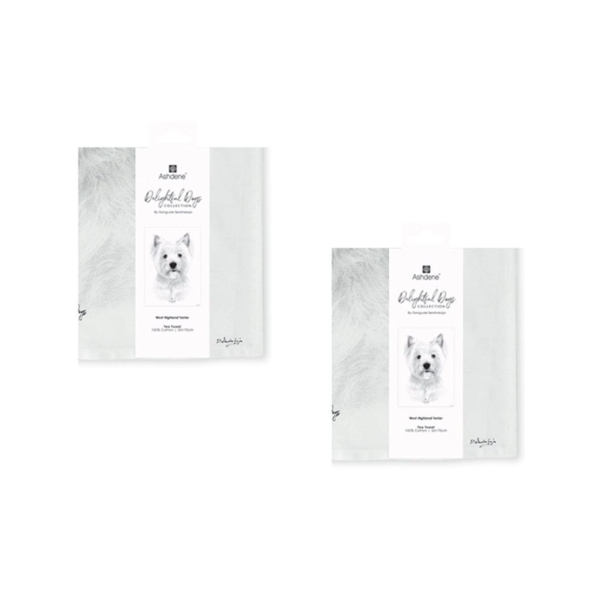 Set of 2 Delightful Dogs Cotton Kitchen Tea Towels 50 x 70 cm West Highland