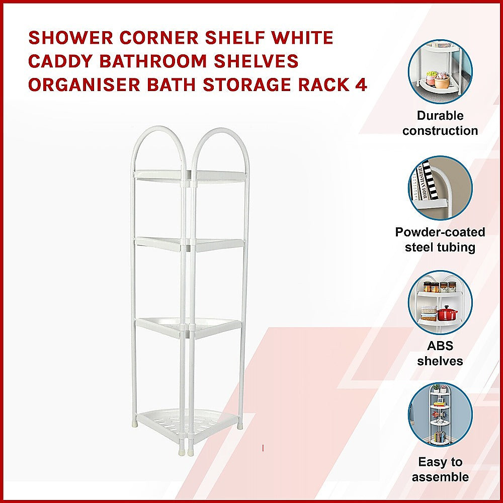 With this white corner shelf caddy from Randy & Travis Machinery, you'll enjoy four shelves of streamlined beauty to display your soap, shampoo, and other bath accessories. You keep your favourite products close at hand, yet out of the way of your personal shower space, thanks to its corner design.