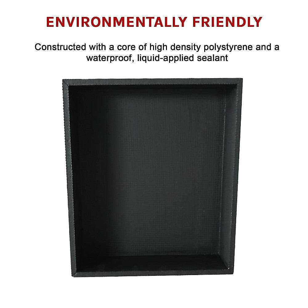 Tile-ready surface: This shower wall niche comes ready to install—an ideal base on which you can install tile, decorative plaster, synthetic renders, and other applications.