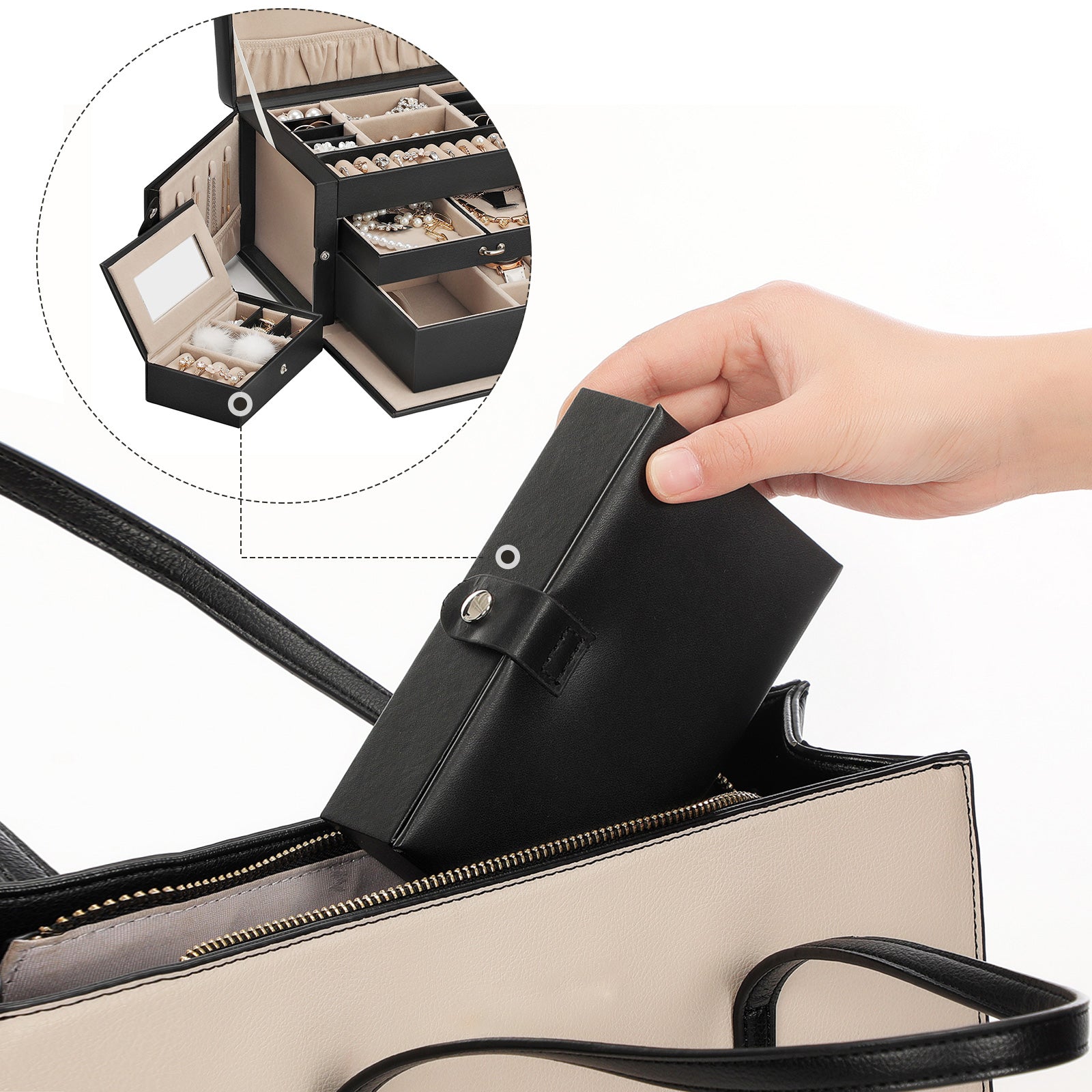 WHAT YOU GET: A jewellery box with lots of space to organise a myriad of your daily accessories and a mini case that will follow you wherever you need it for easier use