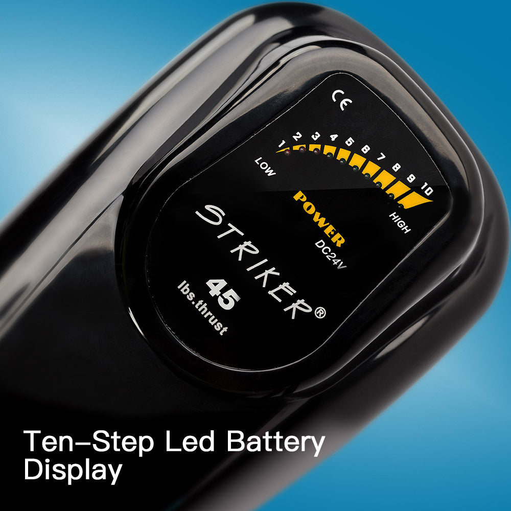 With super-low power consumption, the Genuine Striker gets the most out of your 12V battery. And thanks to its clear LED display, you will always be in control of the power. Suitable for small water crafts such as inflatable boats, canoes and aluminum fishing boats, refer to the below graph for boat size. Simply twist the handle and sneak up on the fish at the optimal speed. With five forward speeds and three reverse speeds, you'll make the right approach every time.