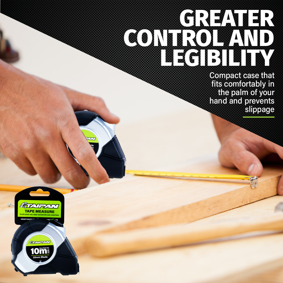Taipan 10m Tape Measure Auto Lock Function Shock Absorbent Rubber Case