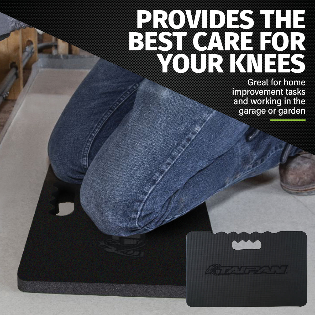 Taipan Reduce knee pain and lower back stress using this high density kneeling pad. This waterproof mat is 40mm thick. It won\'t stay compressed, bouncing back to its original form. With a built-in handle for portability, this pad is perfect for use during home improvement tasks, working in the garage or around the garden.