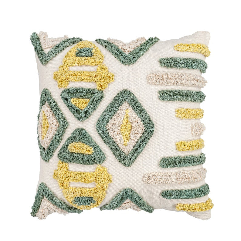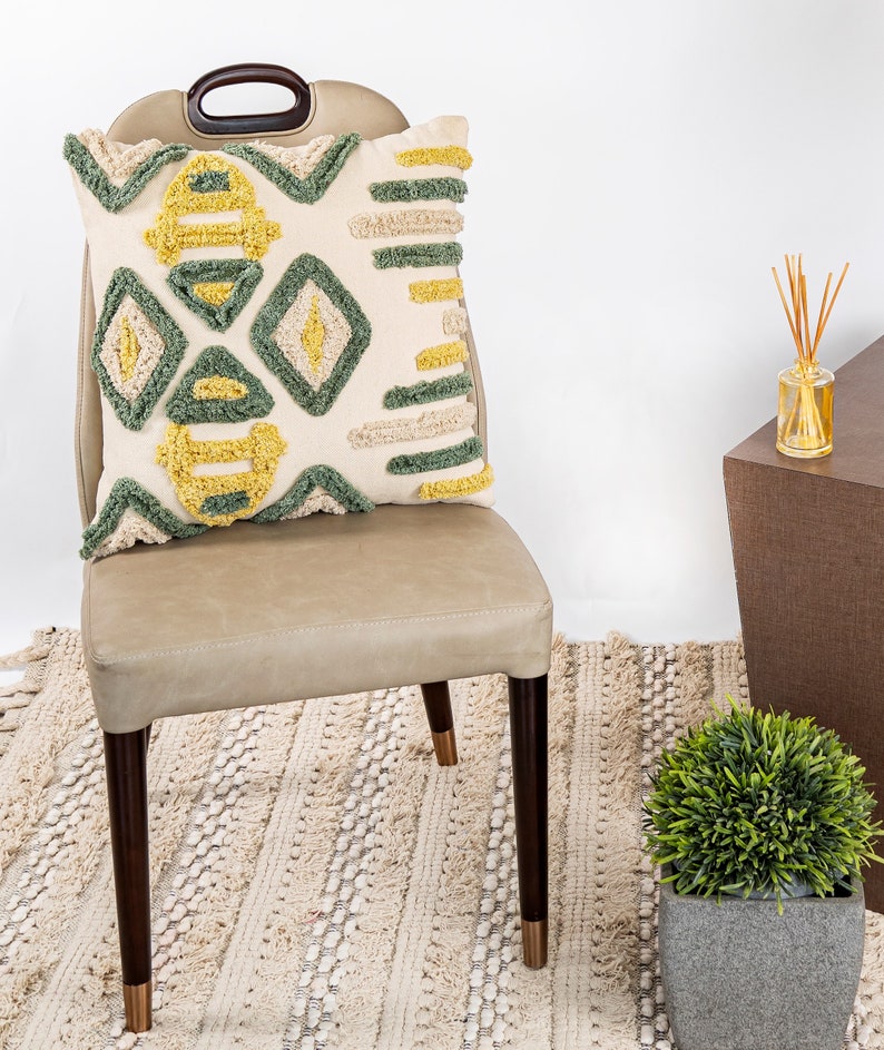 • Cushion front is a hand tufted design with plain cotton linen backing for extra comfort.
