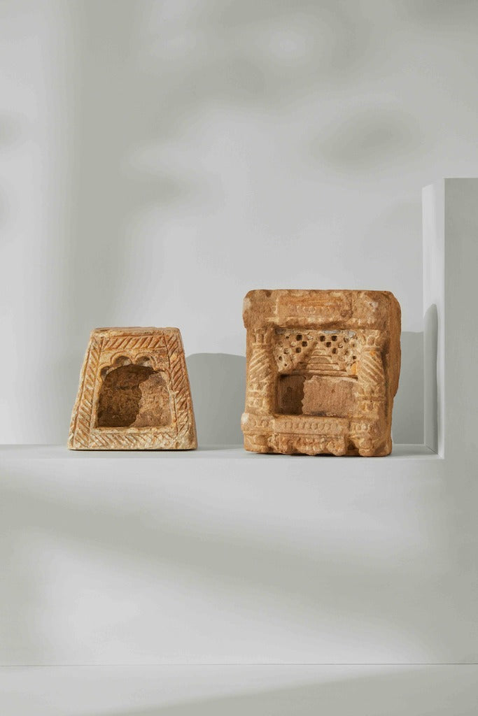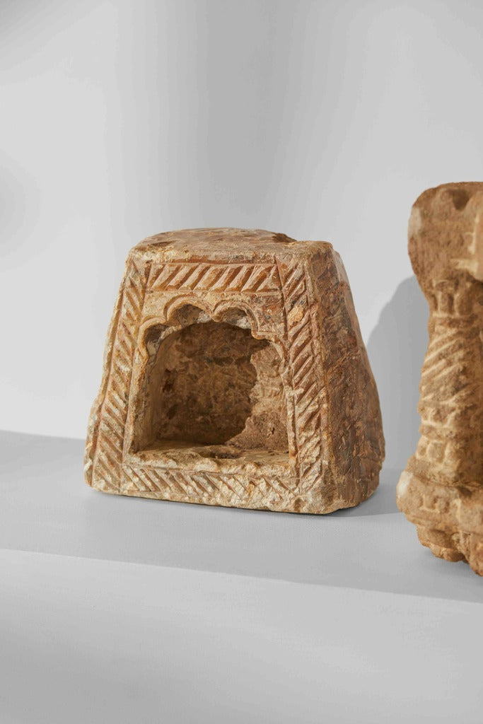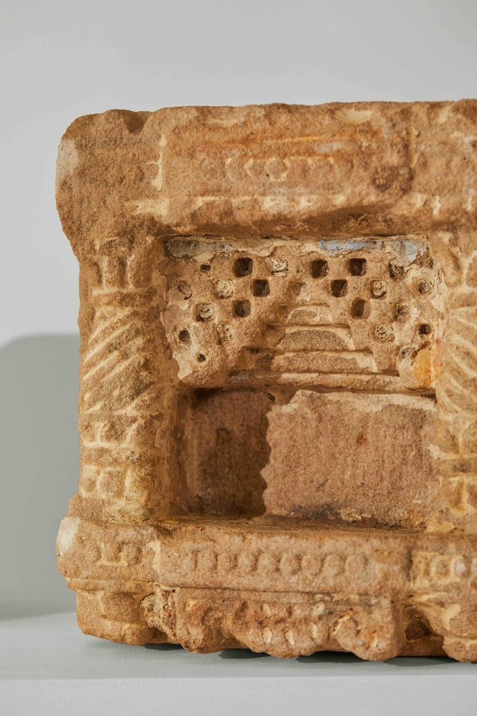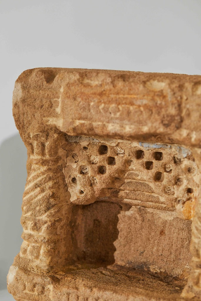 Transport yourself to the enchanting world of ancient India with our breathtaking Antique Sandstone Shrine. Originating from the rich heritage of the region, this piece is a testament to the skilled craftsmanship of the era. Meticulously carved from Yellow Sandstone or Limestone, its intricate pierced details showcase the mastery of the artisans who brought it to life and also suitable for both indoor or outdoor settings.