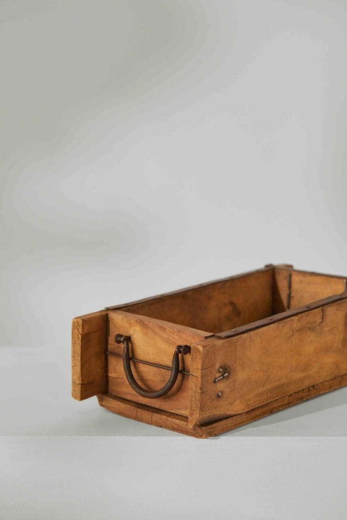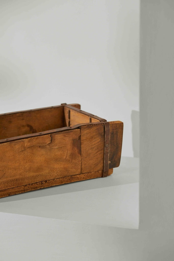 Indulge in the allure of our antique brick moulds, meticulously crafted from teak and adorned with iron straps, evoking a sense of timeless beauty and intrigue. These exquisite pieces serve as a testament to the rural heritage of Rajasthan, showcasing the craftsmanship of skilled artisans who fashioned clay and mud bricks for buildings across the region more than 65 years ago.