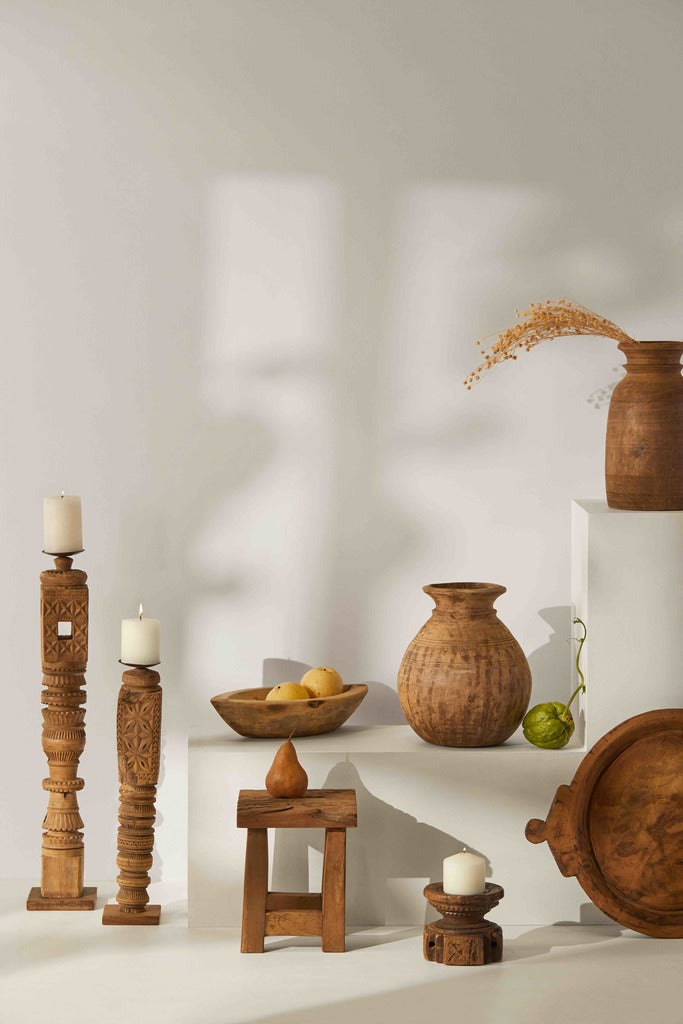 Crafted meticulously by hand using Teak wood, each piece possesses a distinct character defined by its cracks, imperfections, wear, and natural variations in color. These elements contribute to the exquisite patina and individuality that make this piece truly one-of-a-kind.